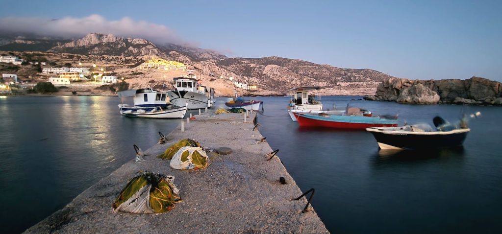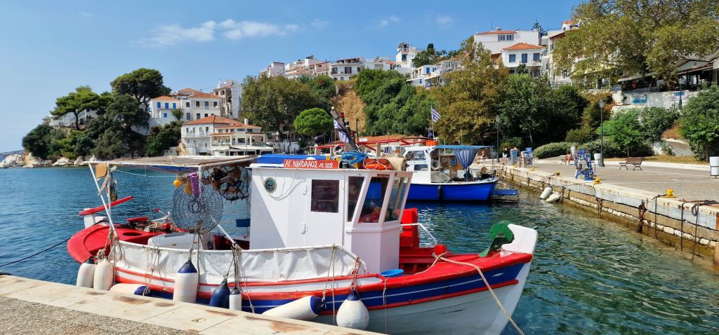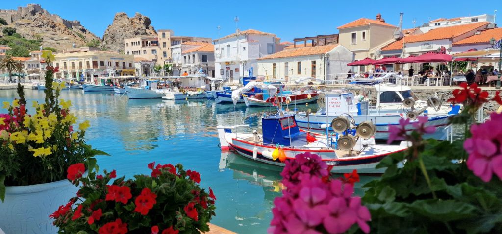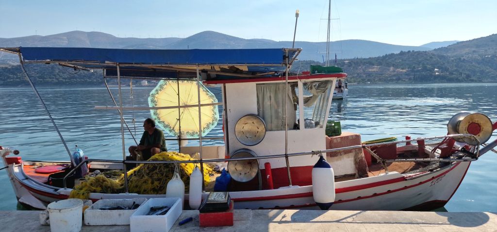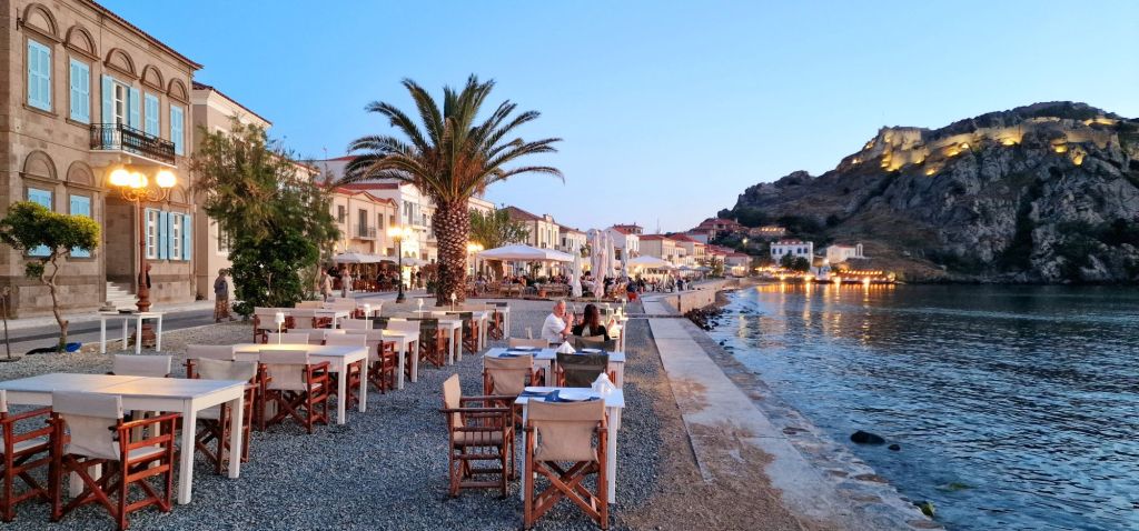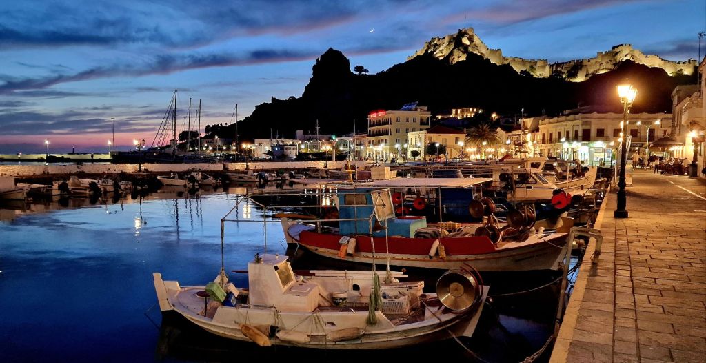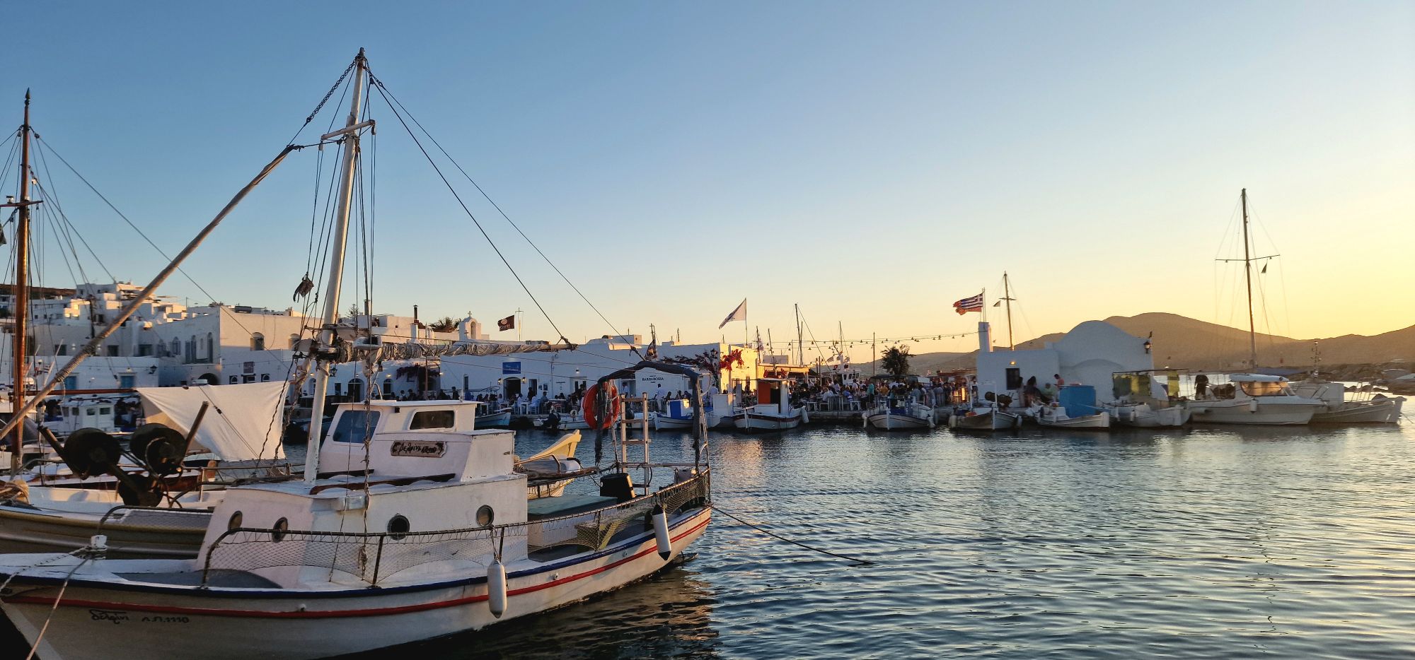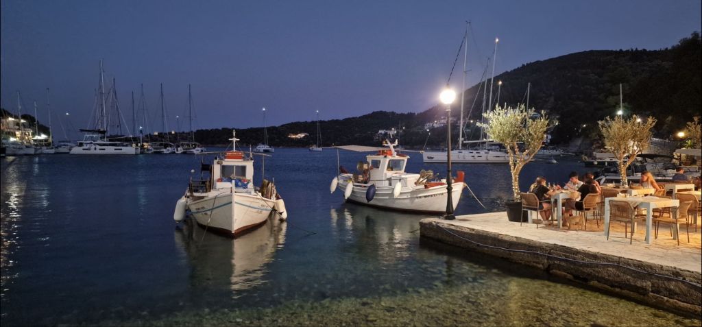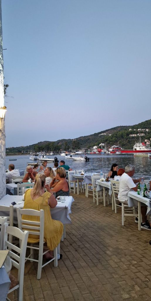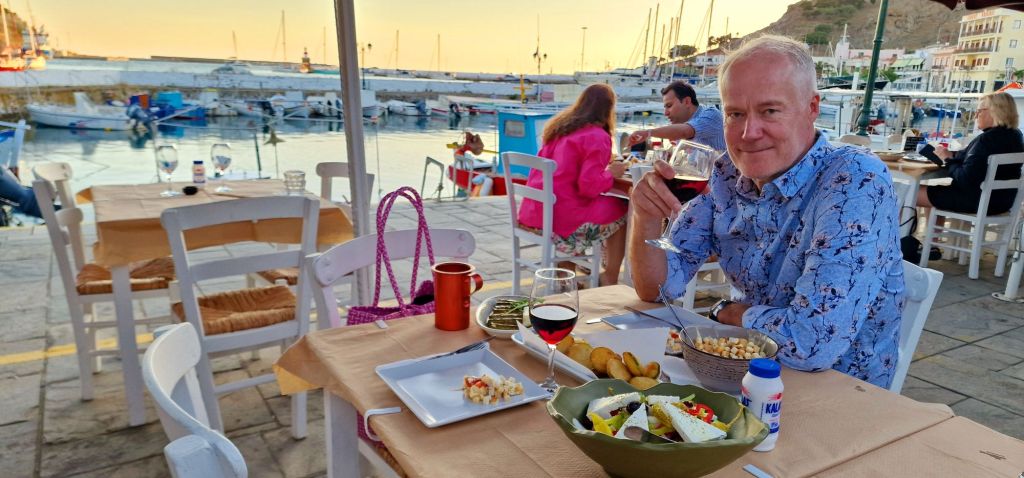Vi äter tidig kvällsmat i Naoussa’s pittoreska hamn…..👇