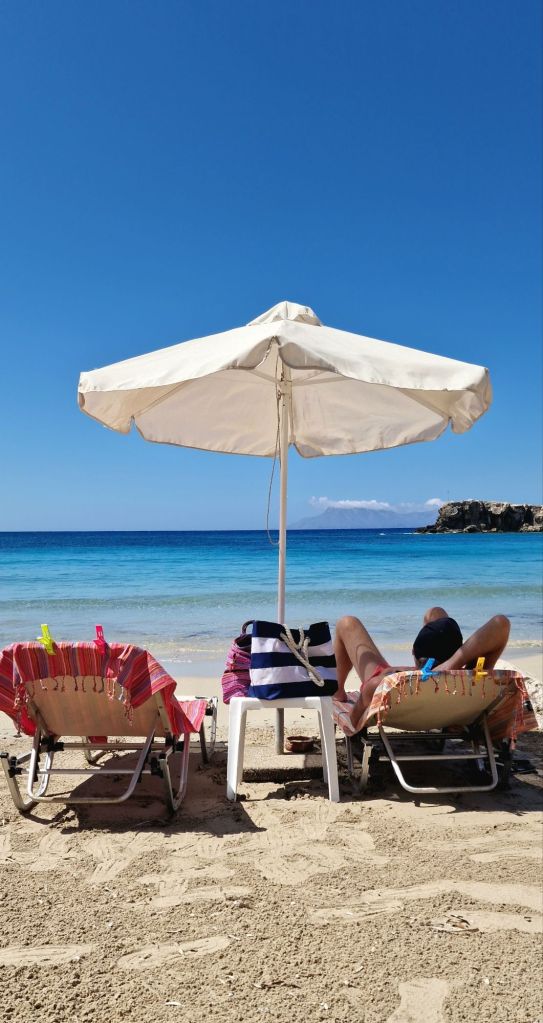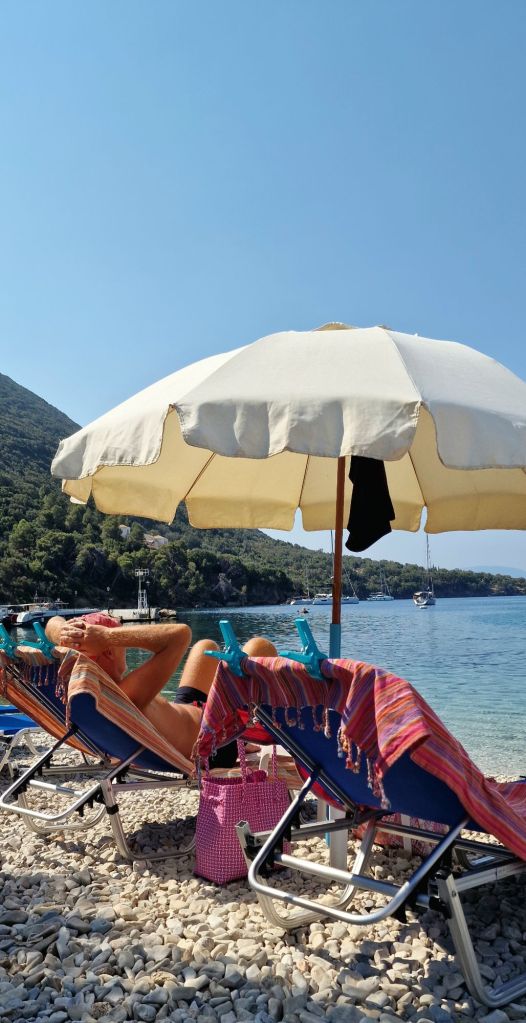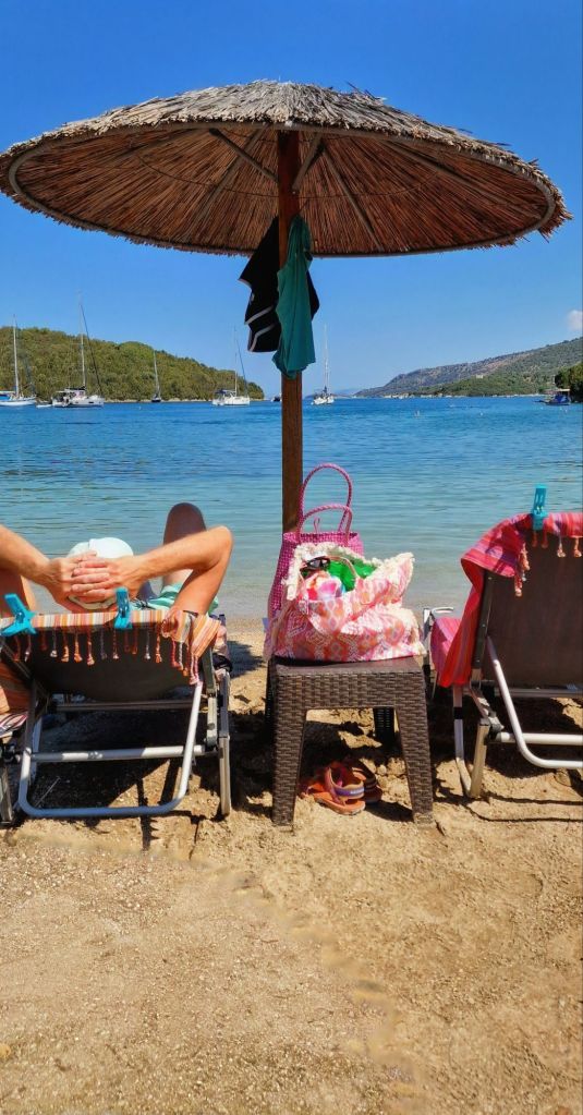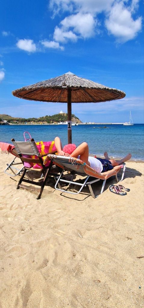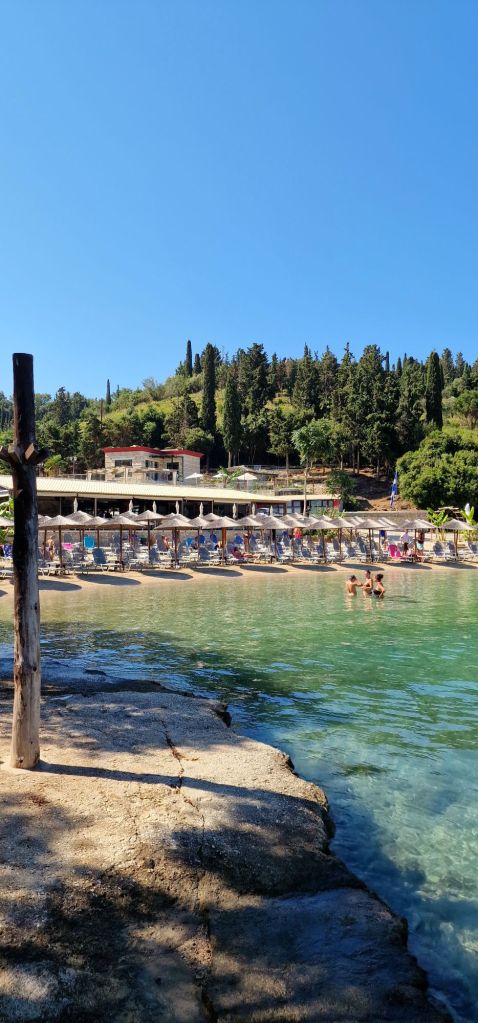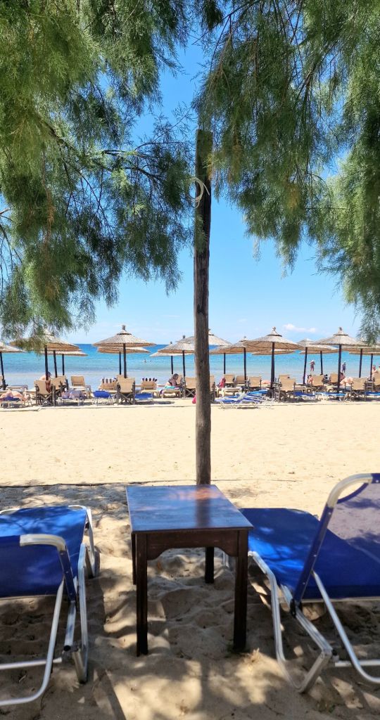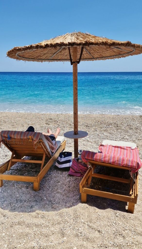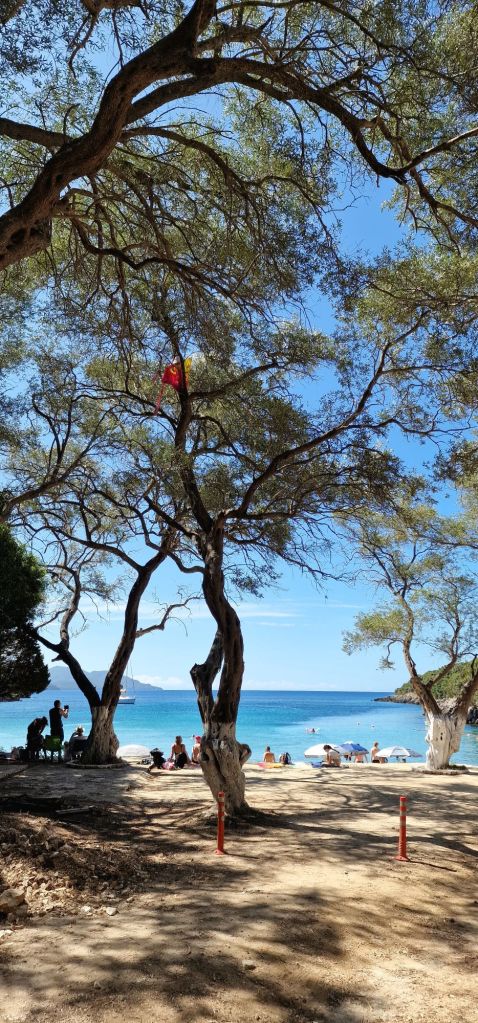Ny dag & nya äventyr…..nedan den lilla delen av Logaras beach som är organiserad & med ett fåtal tavernor….👇