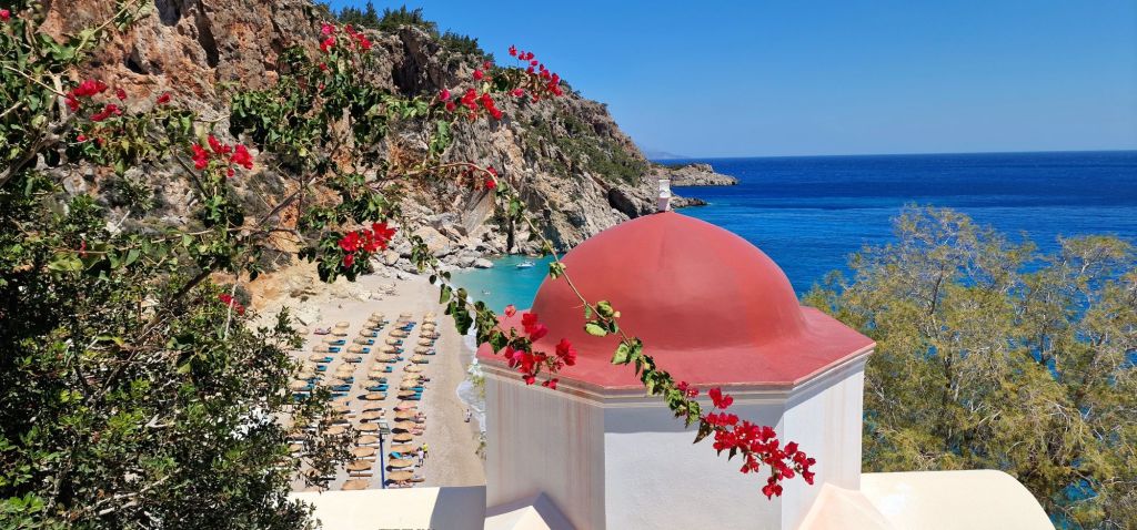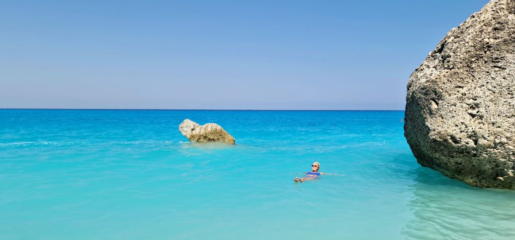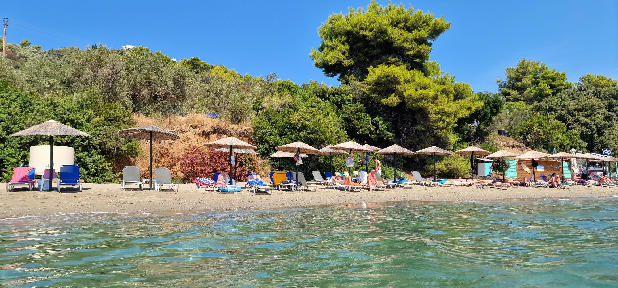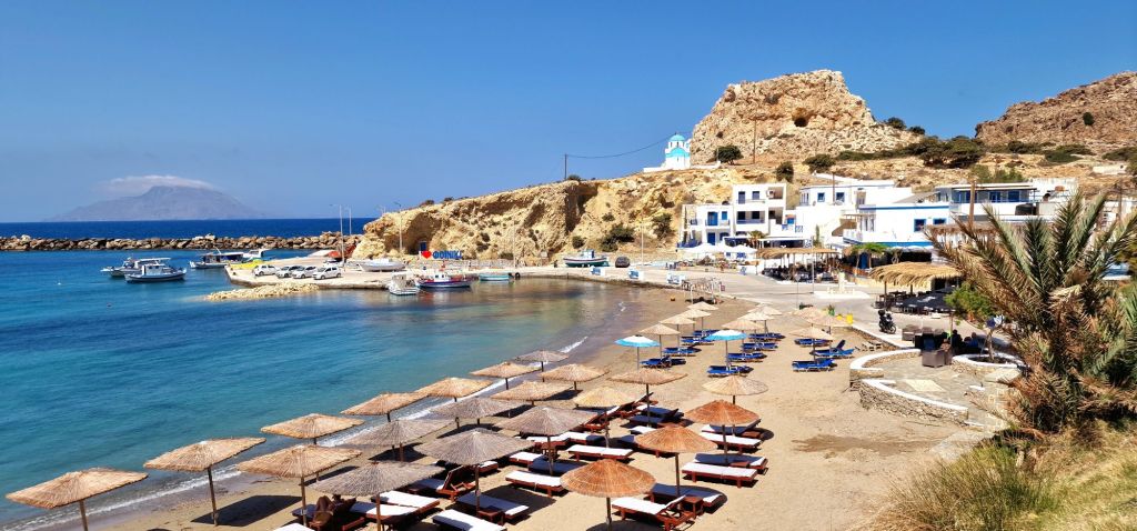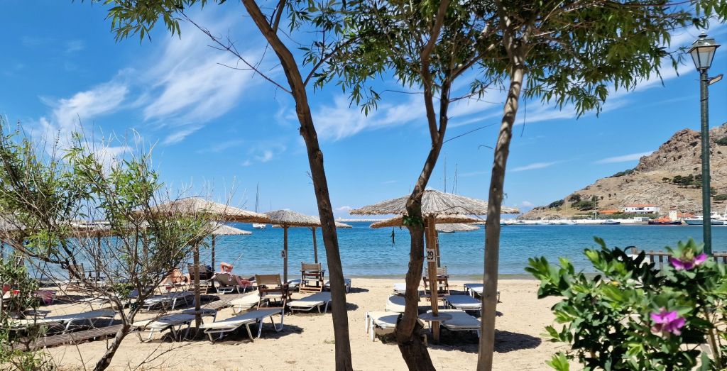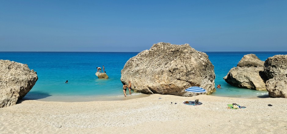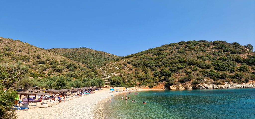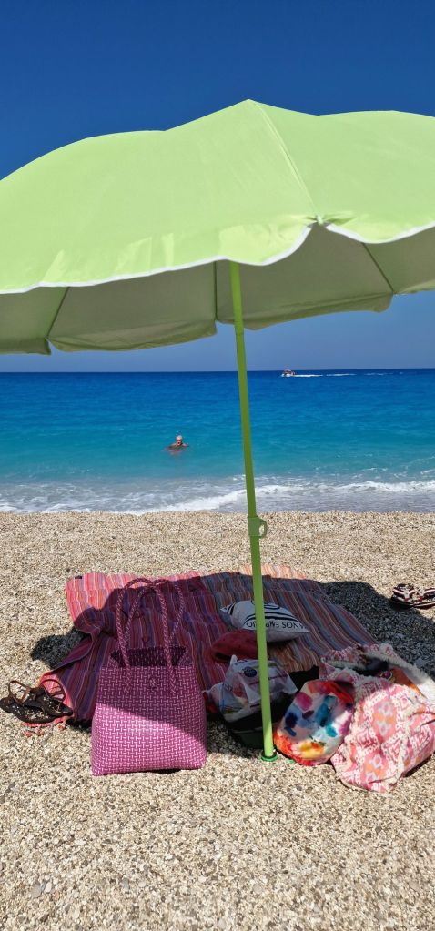 Ny dag & nya äventyr…..nedan den lilla delen av Logaras beach som är organiserad & med ett fåtal tavernor….👇