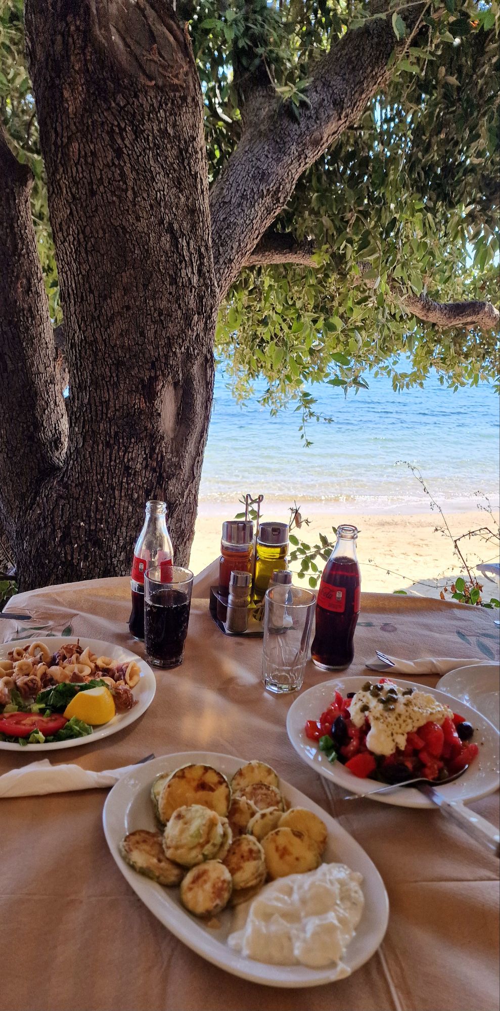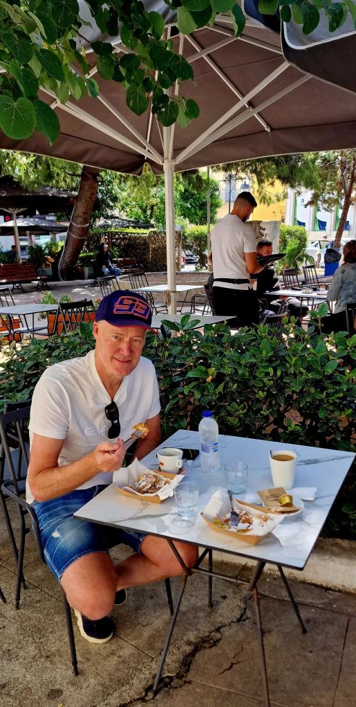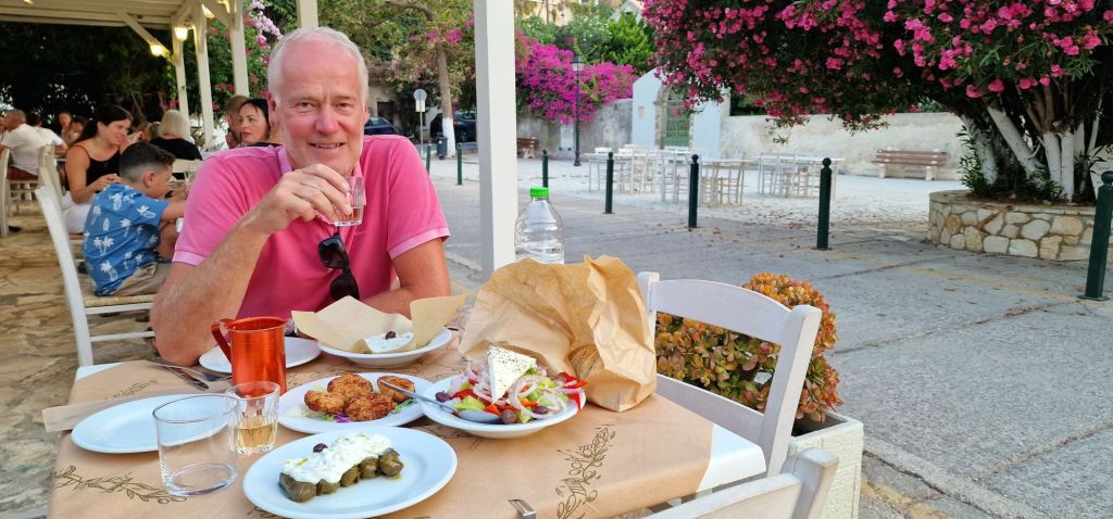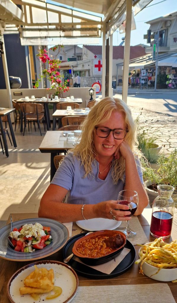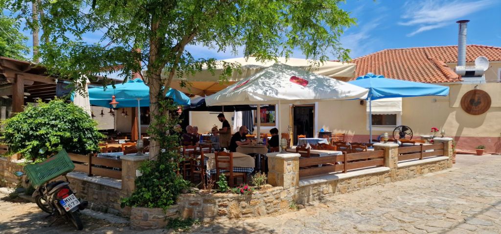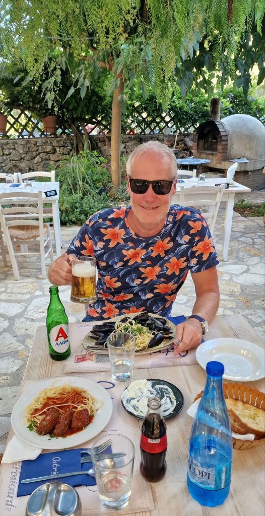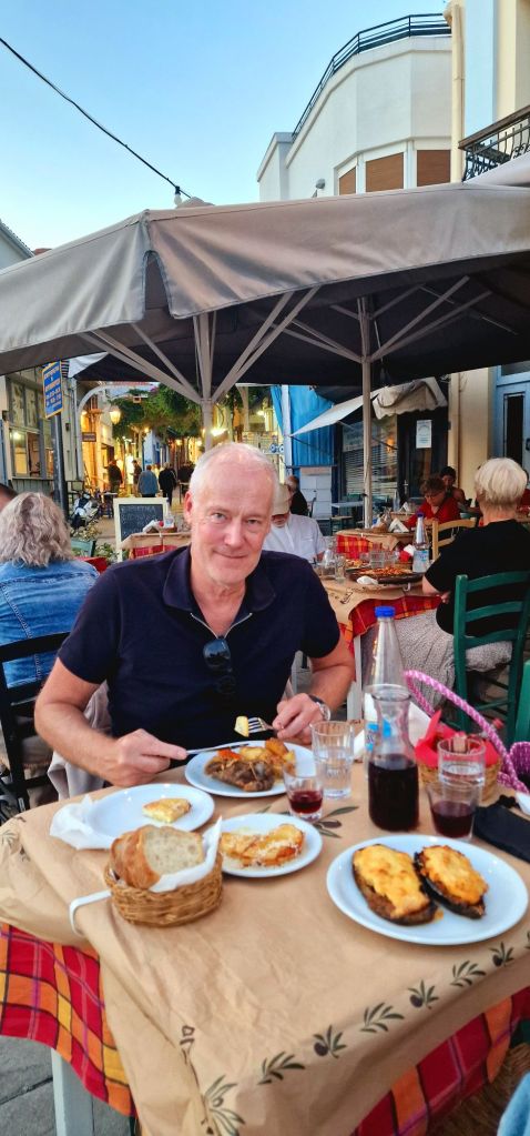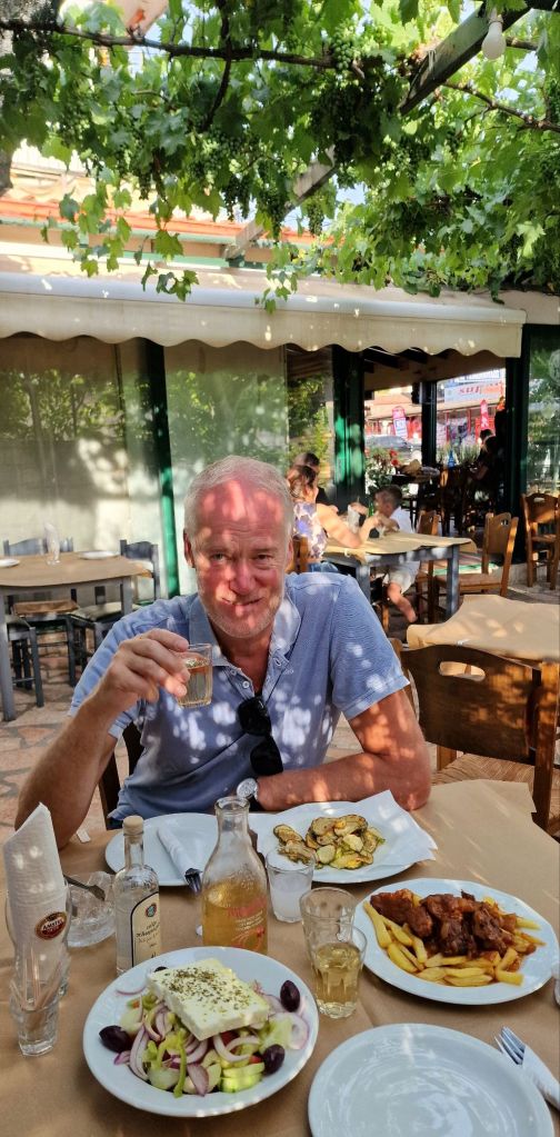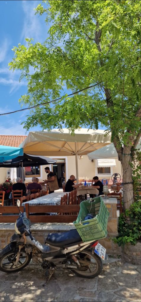 Efter besöket kör vi mot lilla Aliki för att äta lunch…..👇