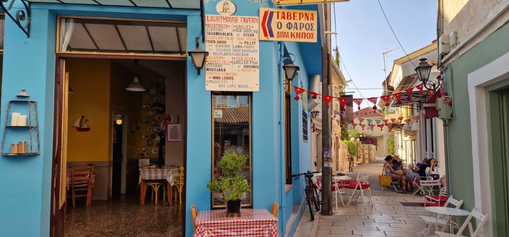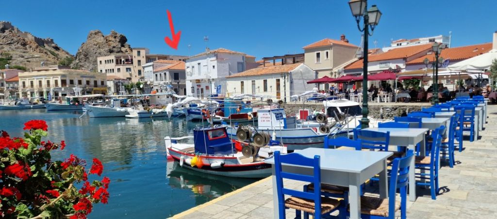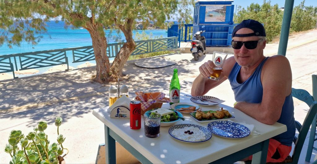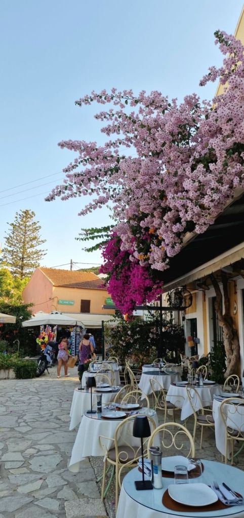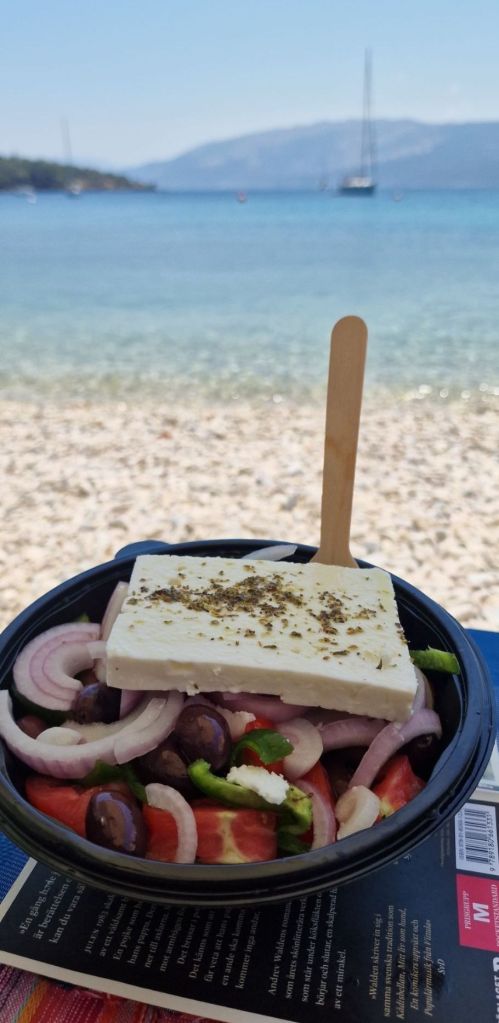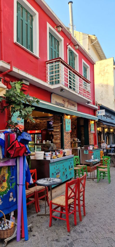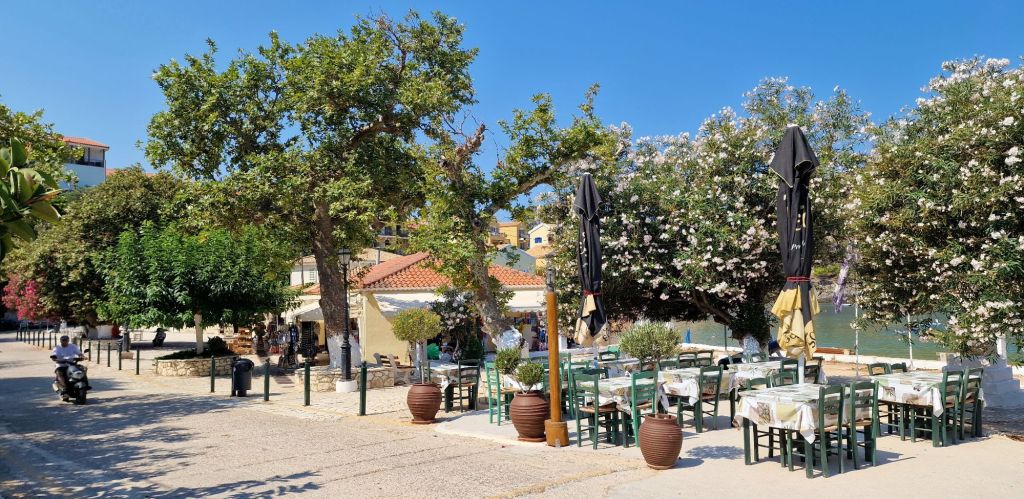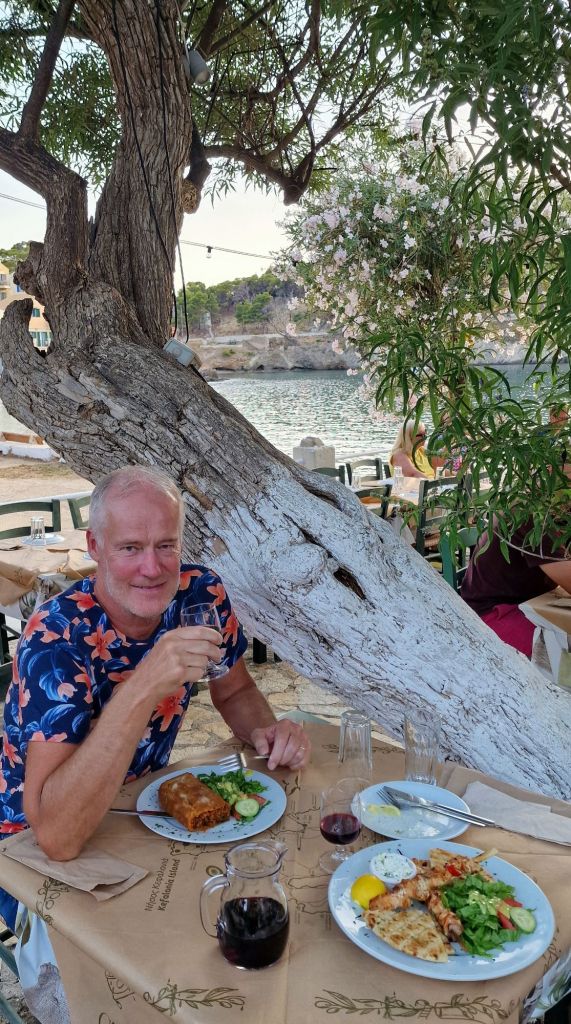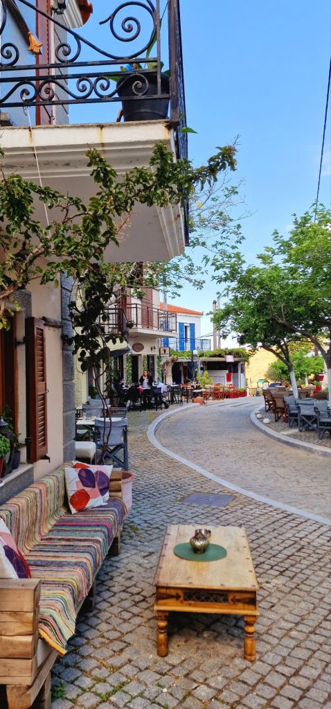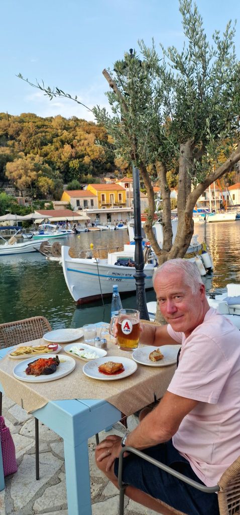 Efter besöket kör vi mot lilla Aliki för att äta lunch…..👇