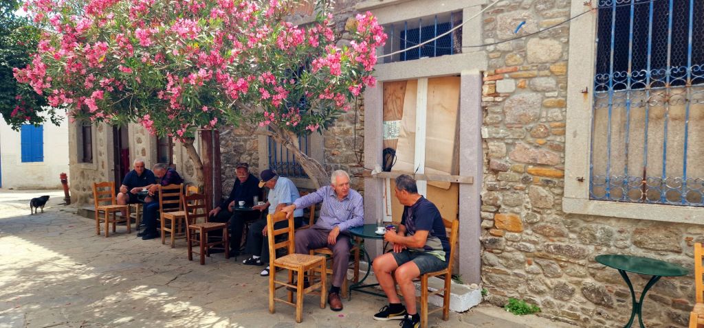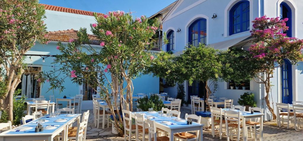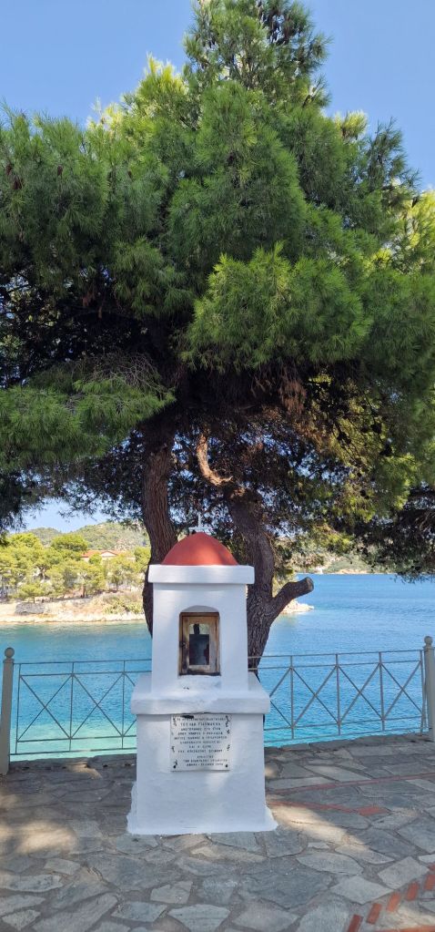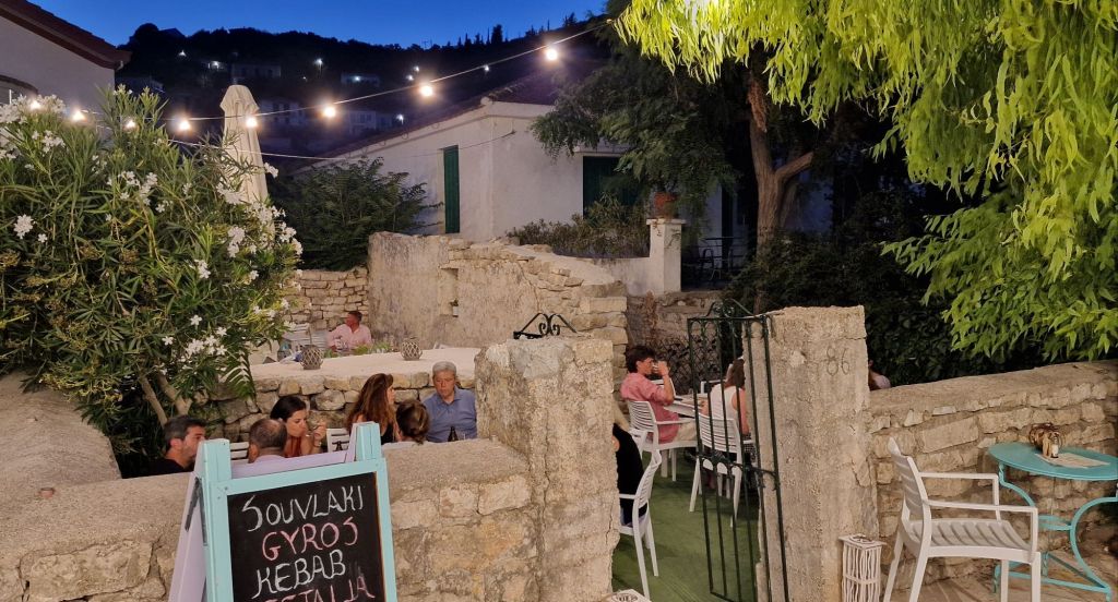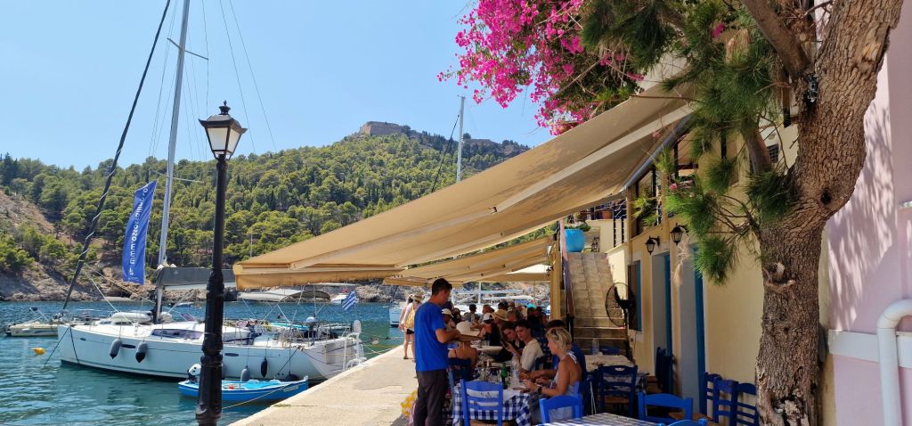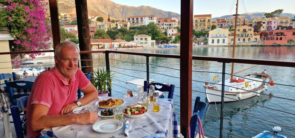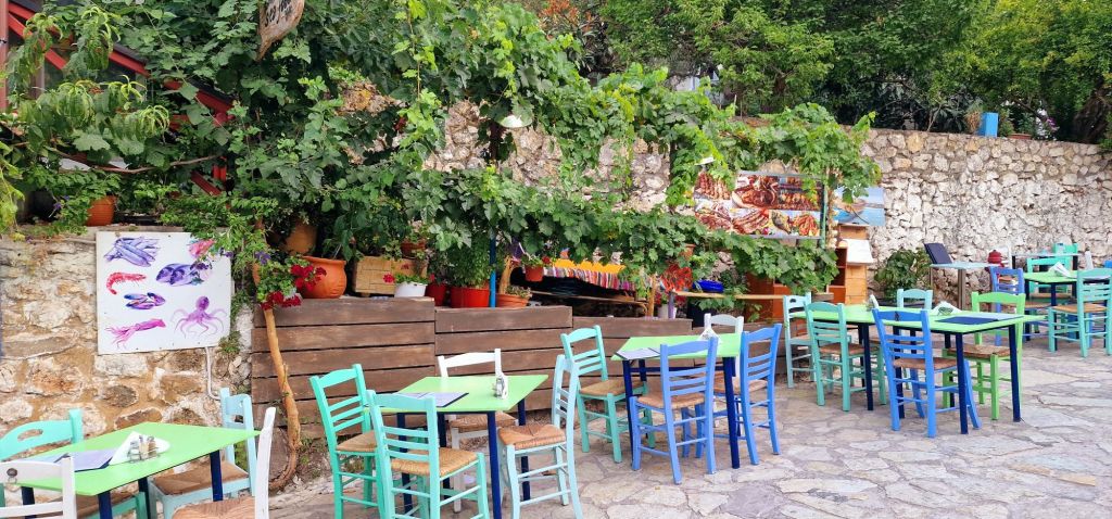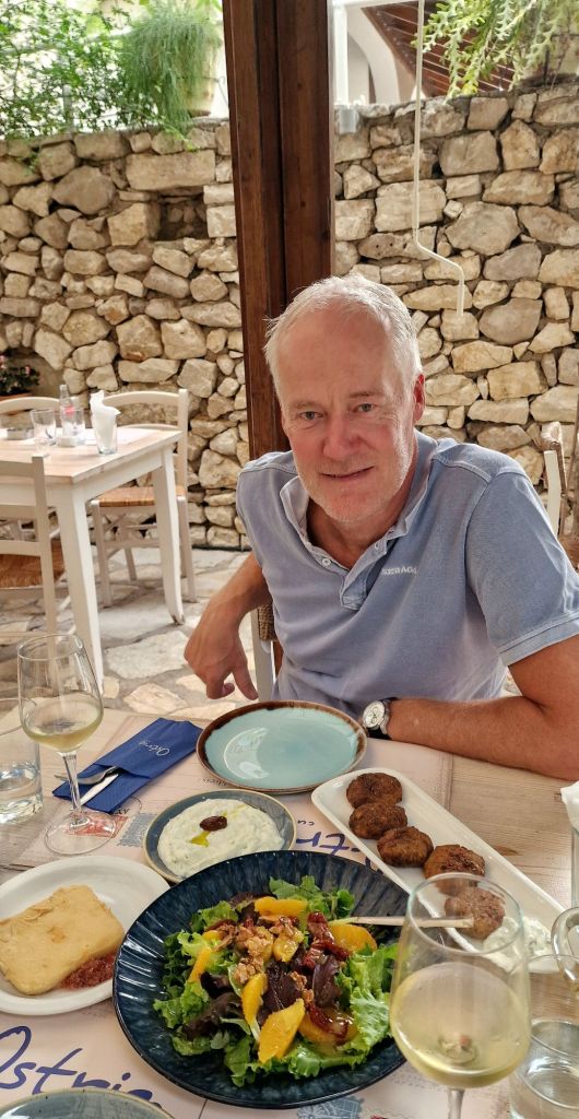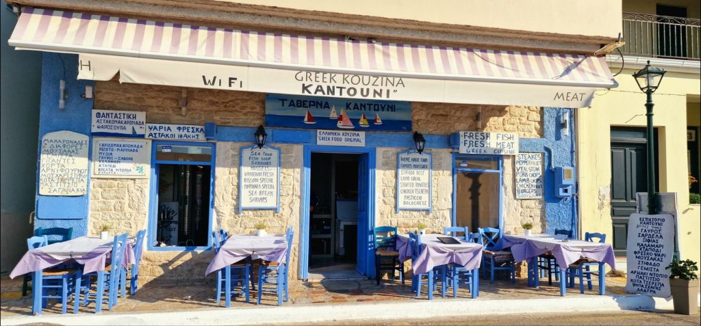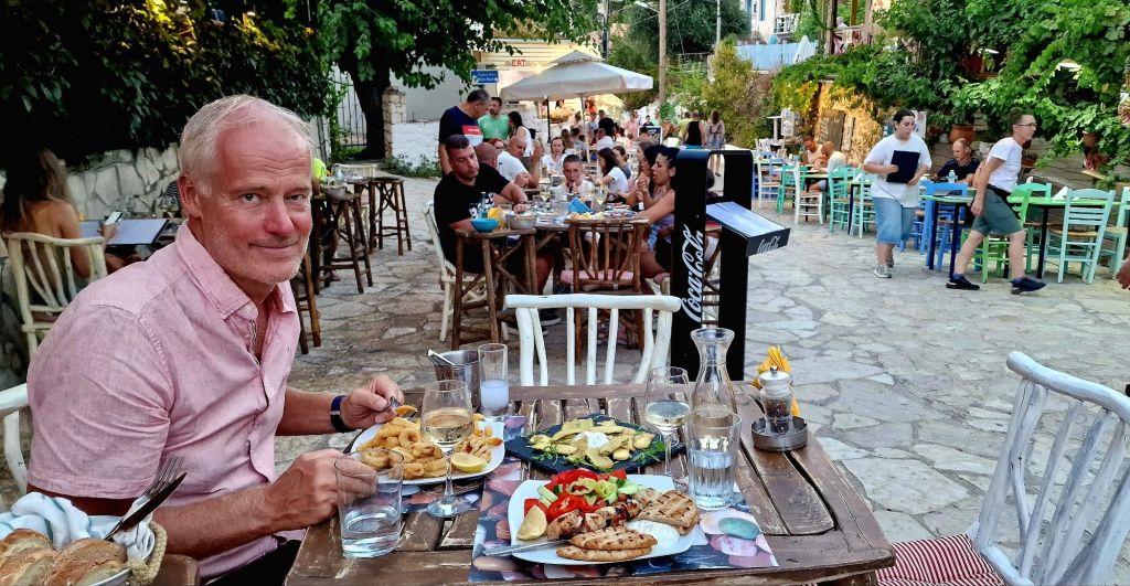 Efter besöket kör vi mot lilla Aliki för att äta lunch…..👇