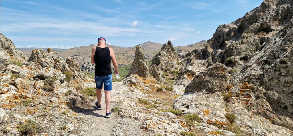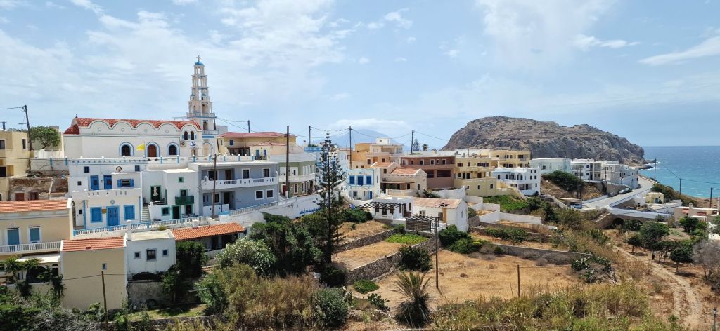 Alla har en kaktus under armarna!!!😂Vi är på promenad mot lilla byn Piso Livadi….