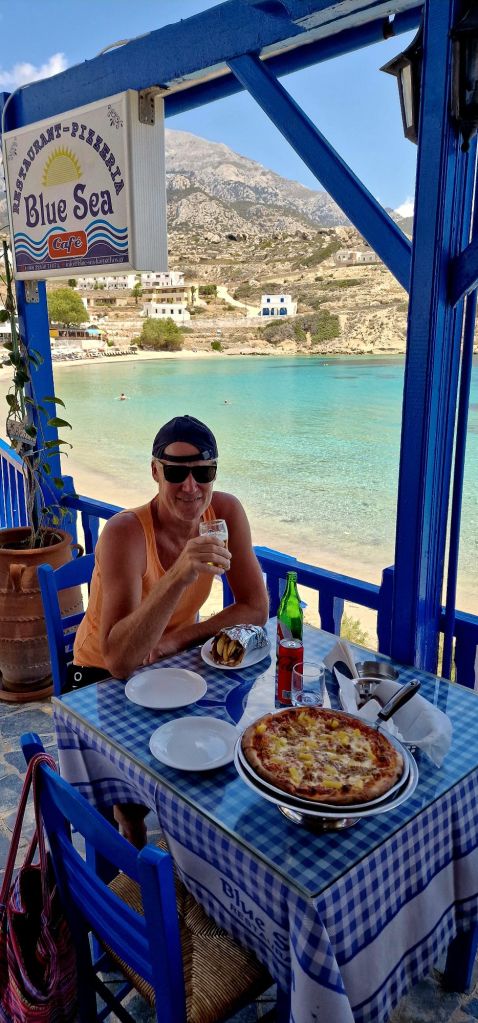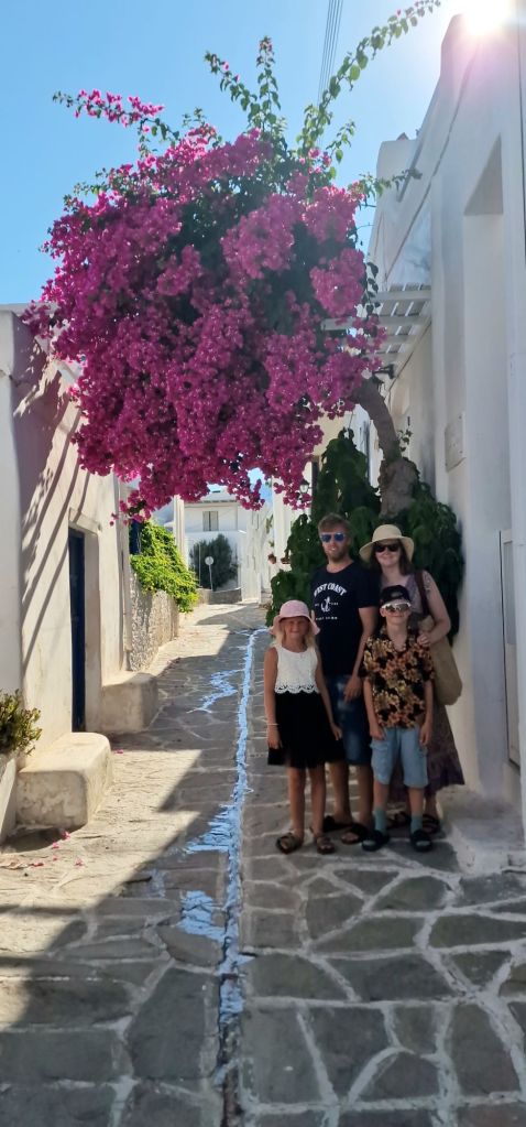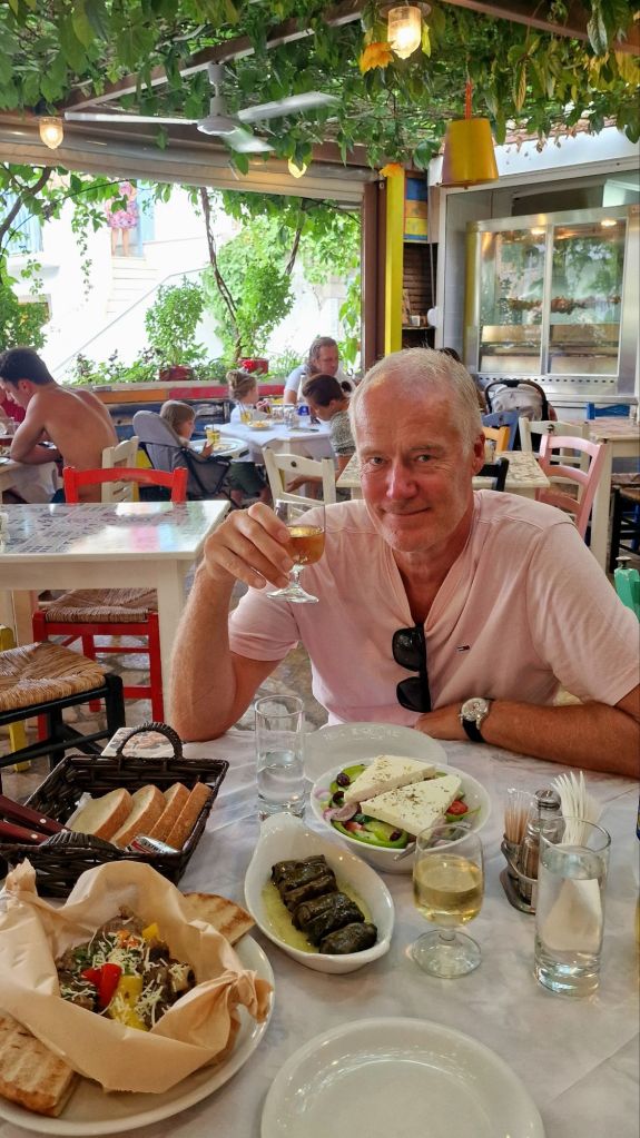 Nu har barn och barnbarn återvänt hem tidigt tidigt i gryningen & det känns sååå otroligt tomt😥Vi väljer att flytta sista natten in till hamnstaden ”Parikia” för att ha promenadavstånd imorgon till båten som ska ta oss vidare mot ön ”Astypalia” dit Håkan längtat tbx sen vi var där för 8år sen!!!