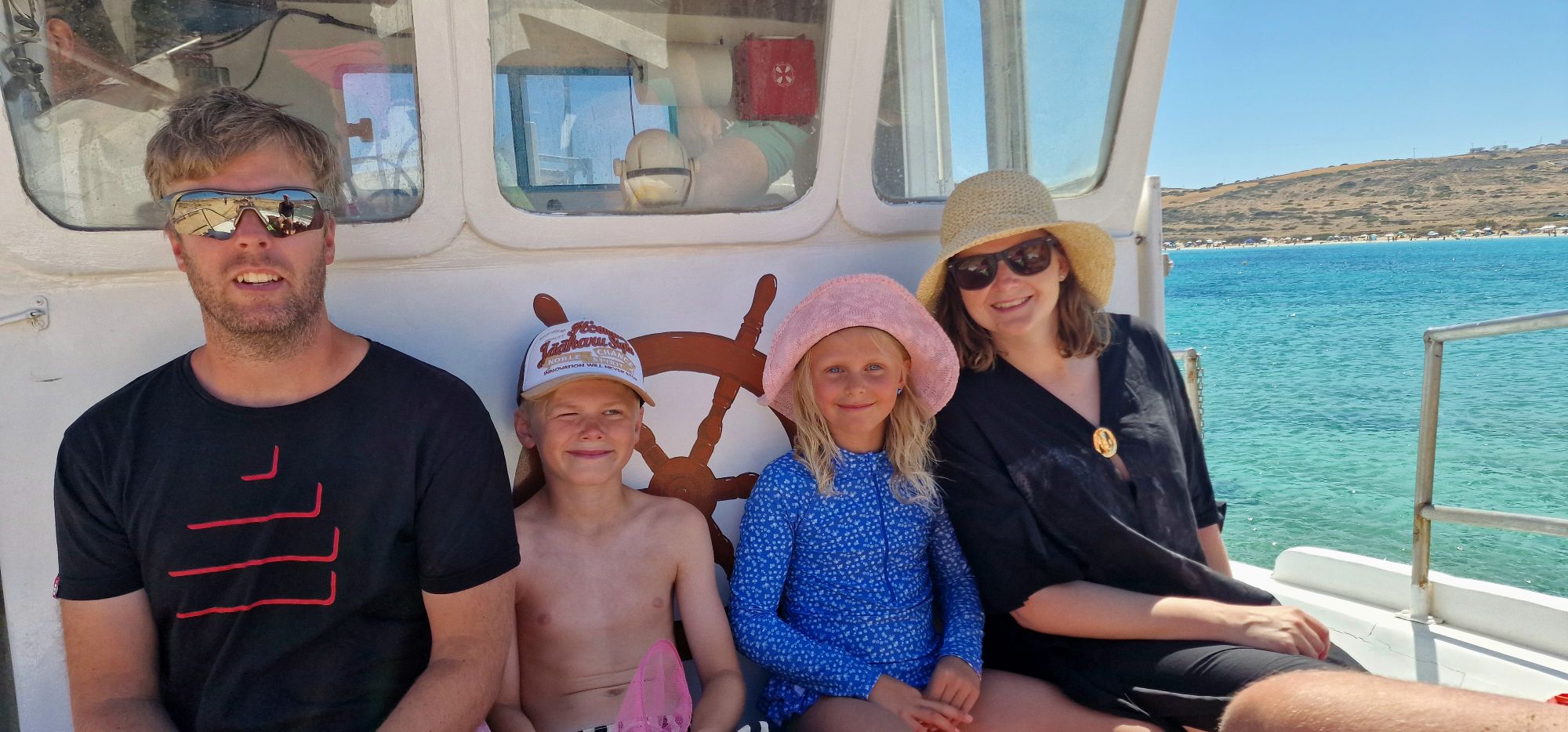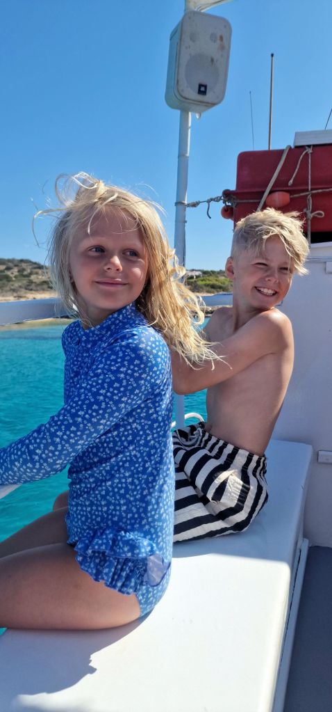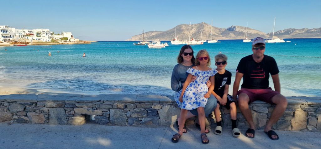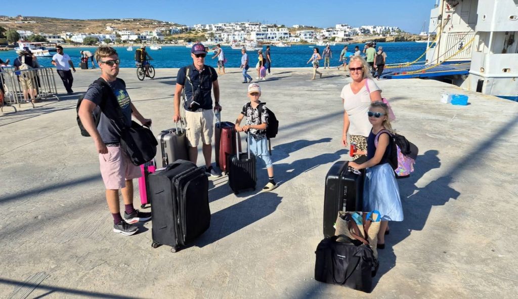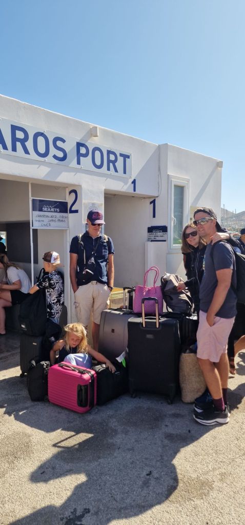 Vi fortsätter alltså med barnbarnen o familjen från Koufonissi mot ön Paros & där möter vi upp ytterligare 1 son som äntligen också gått på semester & ansluter även han med inrikesflyget från Aten till Paros….