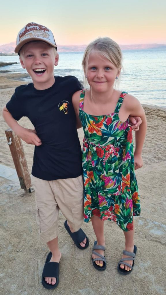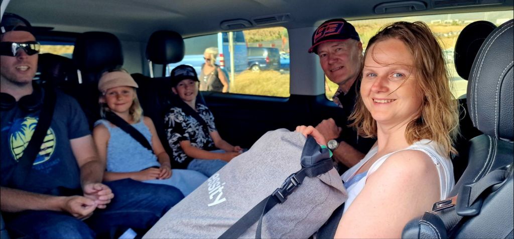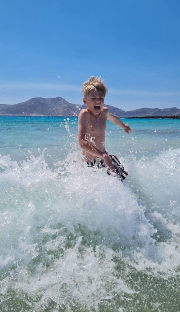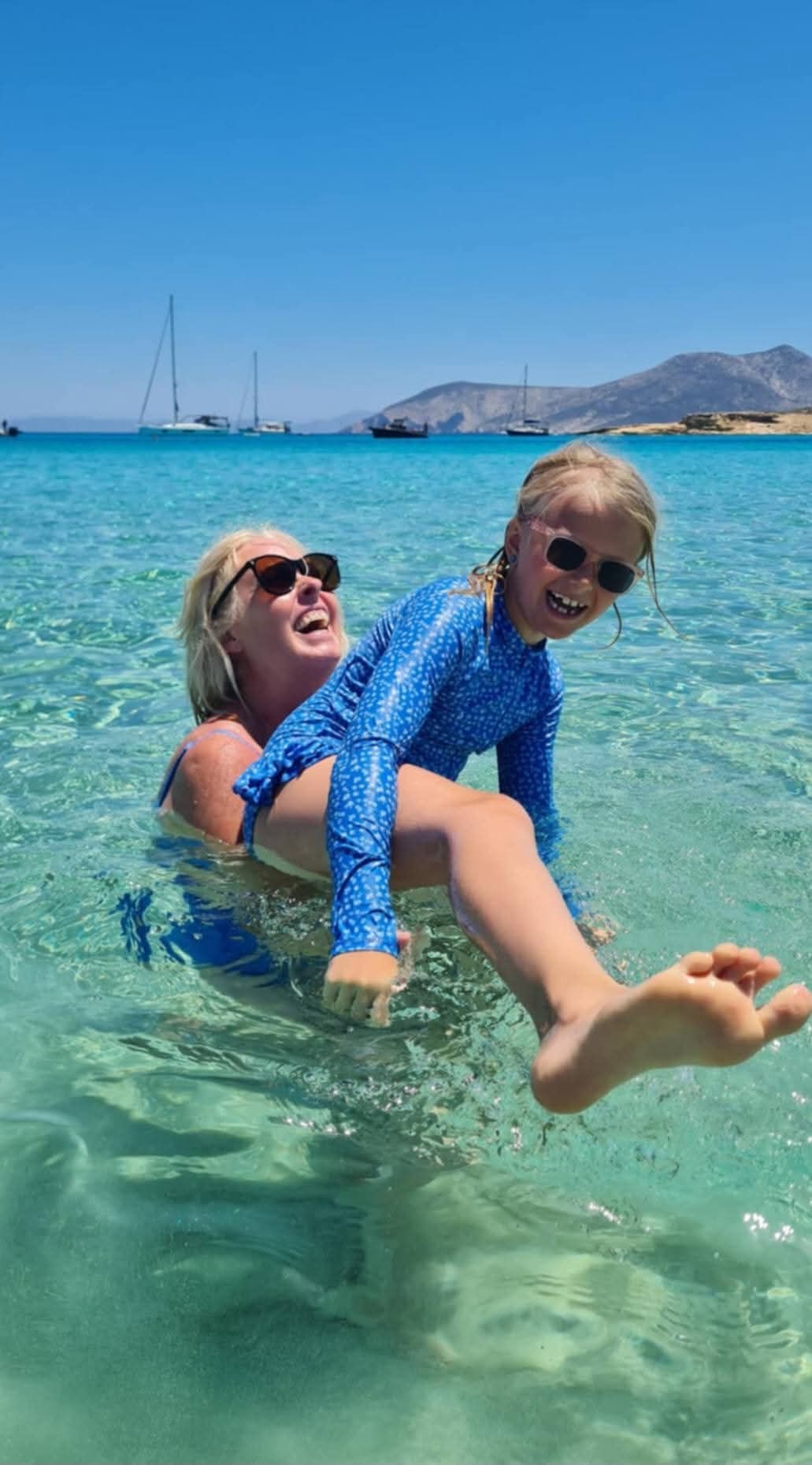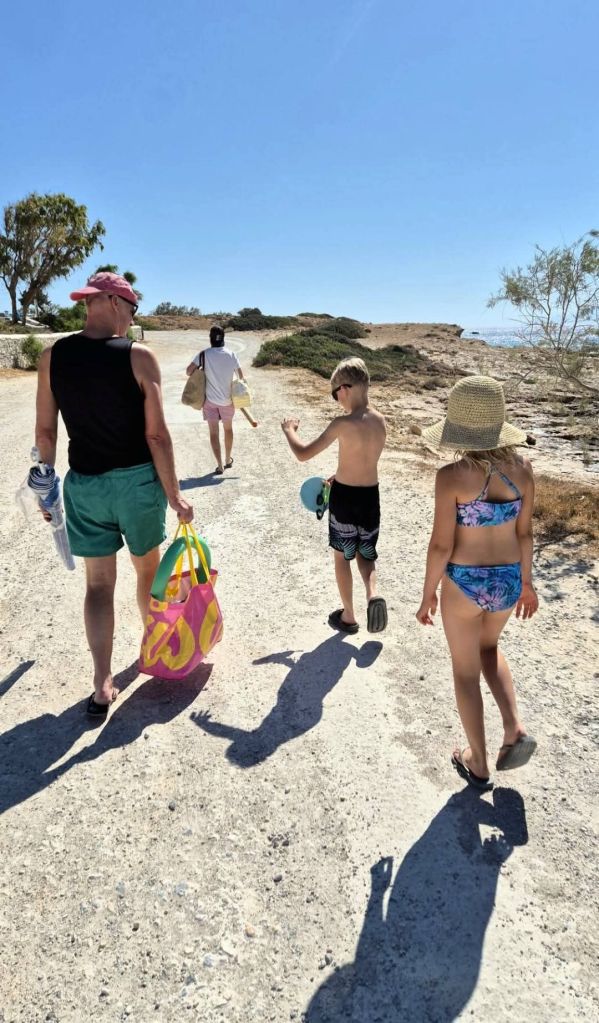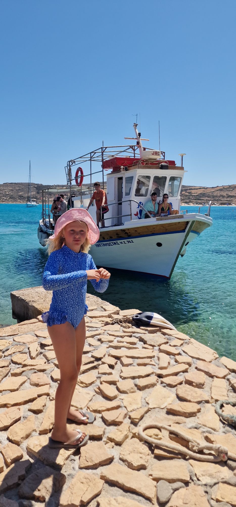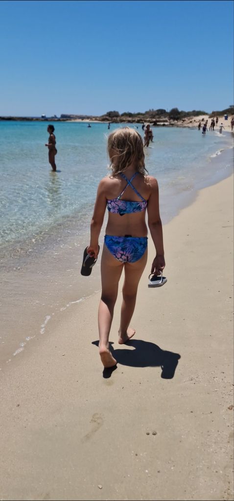 Då promenerar barnbarn med Yiayia (farmor) och mamma bort till Punda Beach & testar den…..👇