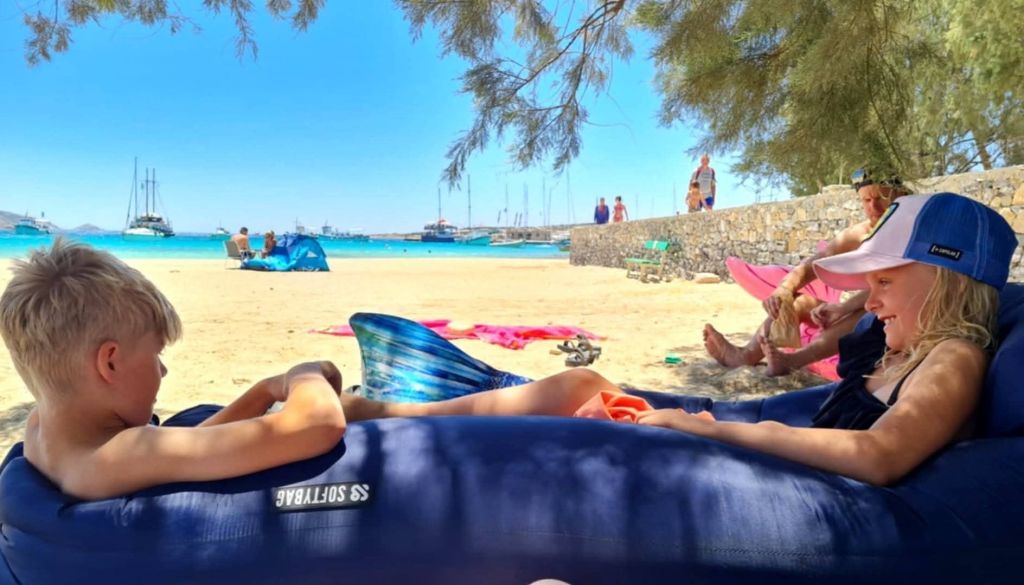 Stranden är känd o ligger strax intill den populära turistorten Naoussa, vilket innebär myyycket folk…..