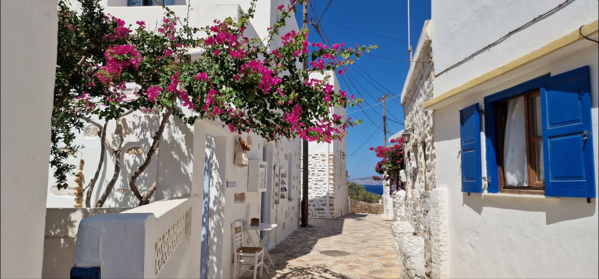 Lefkes är oxå en otroligt vacker by med drygt 500 fasta invånare…..här kryllar också av vitkalkade små smala gränder plus en hel del trappor – betydligt mer turister som hittat hit & det finns både butiker/caféer i större utsträckning…..