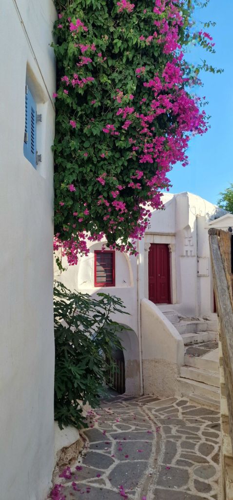Kontrasterna på ön är stora…..lika flashigt o pittoreskt med vitkalkade gator som dom 2 huvudorterna Parikia & Naoussa visar upp….lika genuint o småskaligt är det ute på landsbygden!!💙