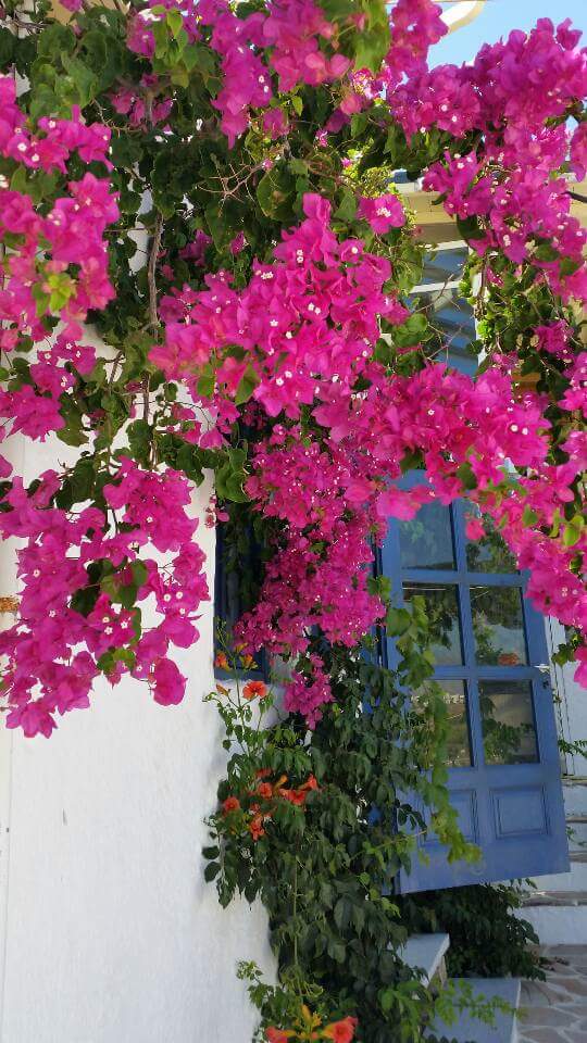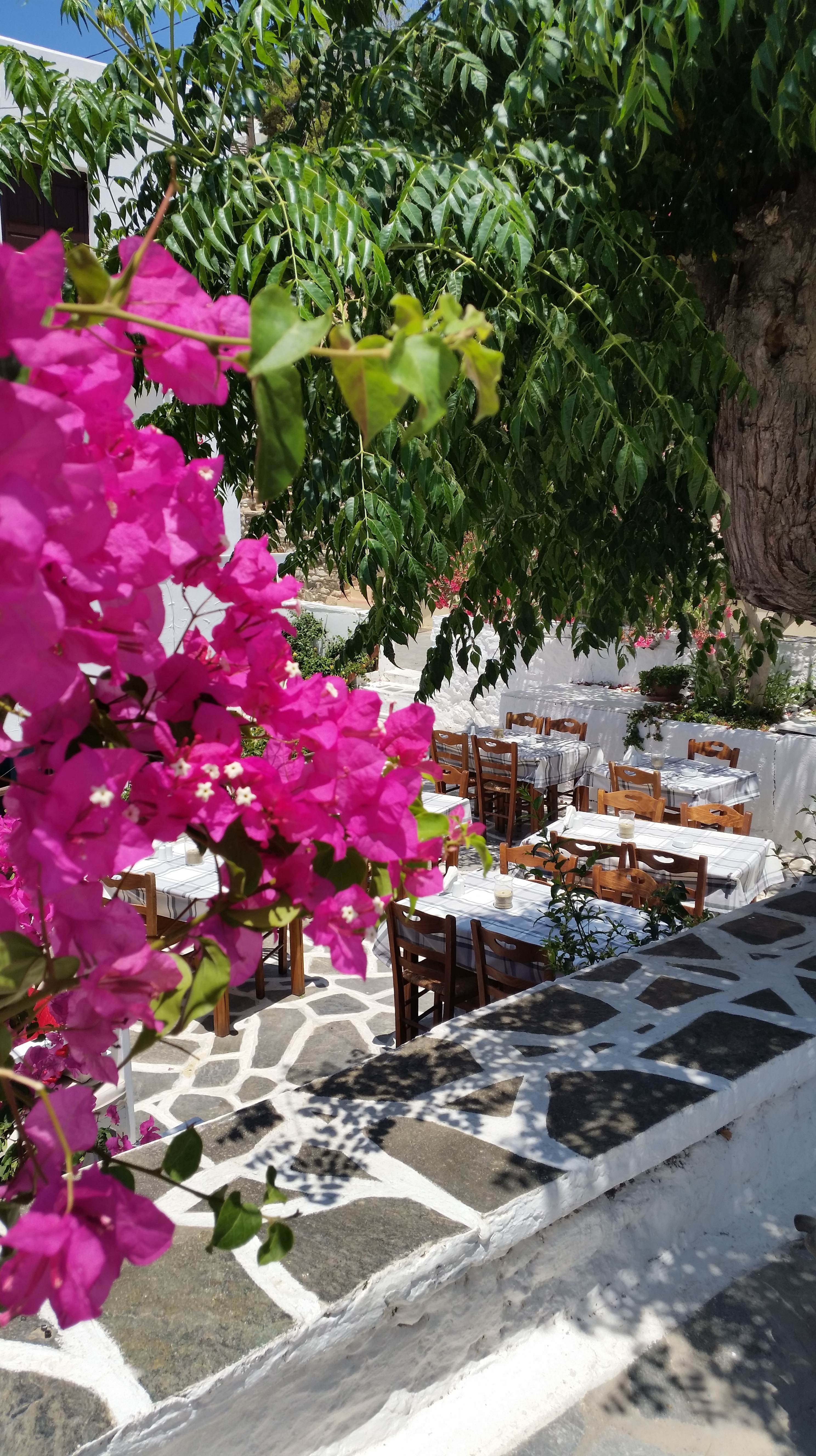 Vacker bouganvillea bakom tavernan på ovan bild……& på bilden nedan syns den lilla tavernan!!!