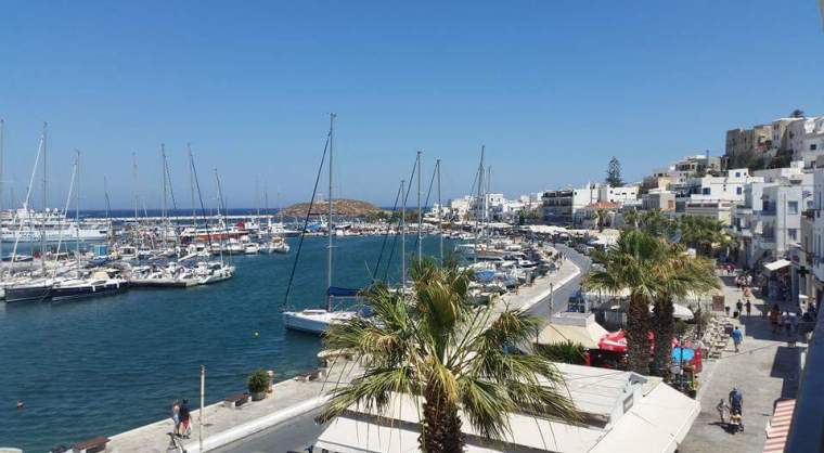 Bilden ovan visar strandpromenaden i Naxos stad…..taget från vår balkong där vi hade 2 övernattningar i somras! (Första gången vi bodde i stan😃)