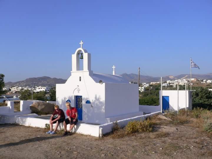 Nedan 2 bilder är utifrån den lilla kyrkan vid Agia Anna…..översta bilden från 2009 med våra pojkar på & den undre på mig & maken 2014🌞