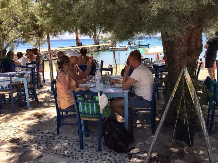 Lite lunch på tavernan ”Avali” ovan…..ligger längst bort på Agios Prokopios beach!!!!