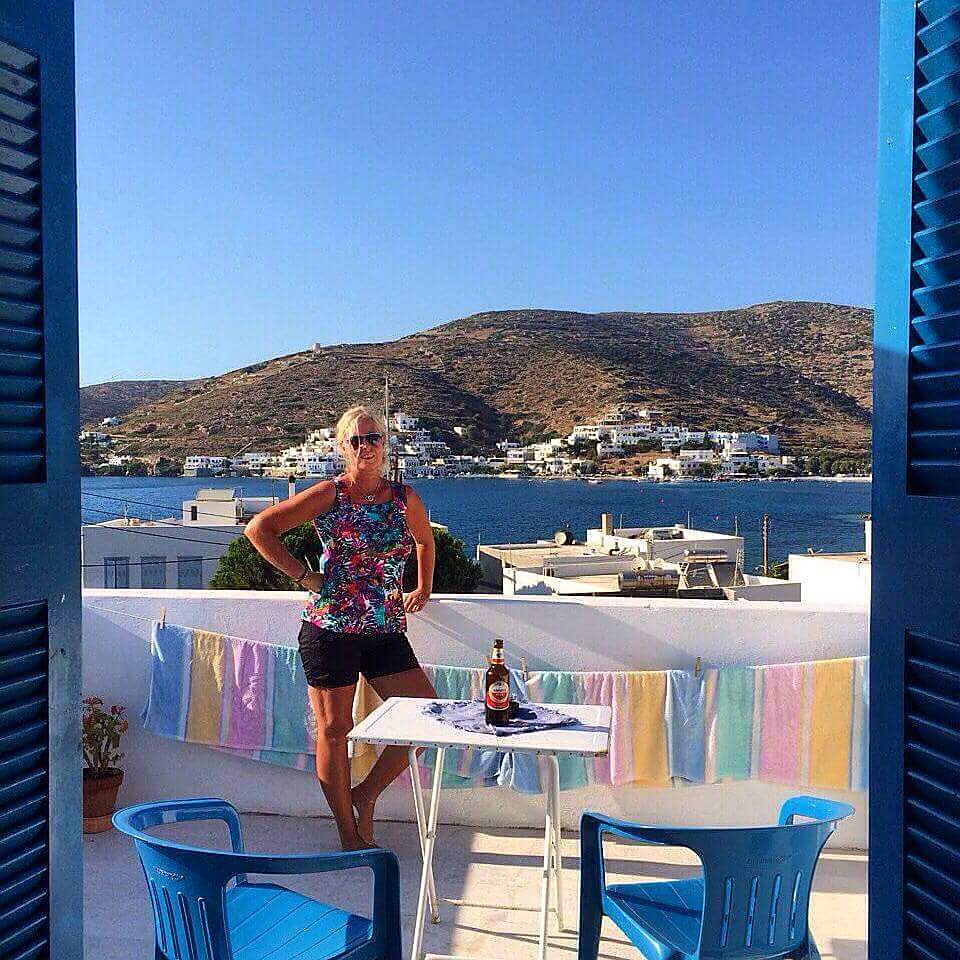 Vi har inte varit på Amorgos sen 2014 & då bodde vi i byn Katapola!!💙💙💙 (åter i sommar) På bilden nedan har vi precis checkat in på ”Porto Katapola Pension”……detta året åkte vi nästan utan att ha bokat & i högsäsong, så då kan man knappast klaga på dennan vyn va??? (Ni får bortse från mig då🤣🤣🤣)