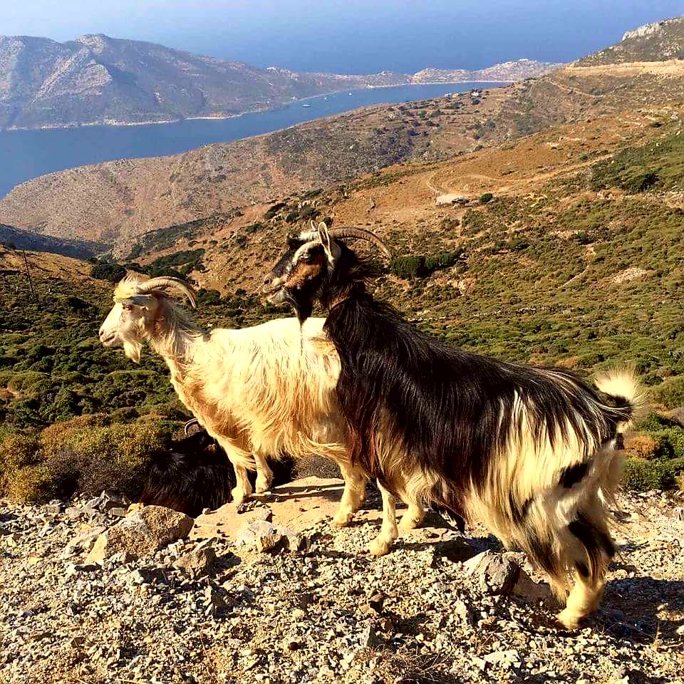 Utmed vägkanten tillbaka till Katapola så möter vi dessa i mitt tycke väldigt vackra getter……många getter/får är fina, men dessa var jättevackra tycker jag!!!🔝🔝🔝