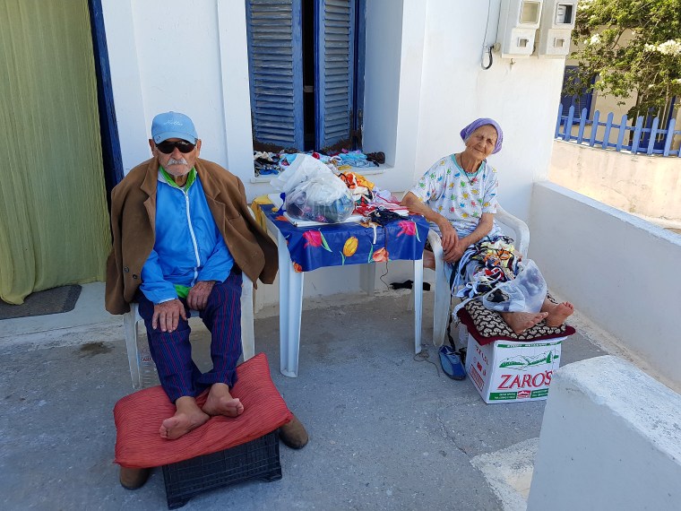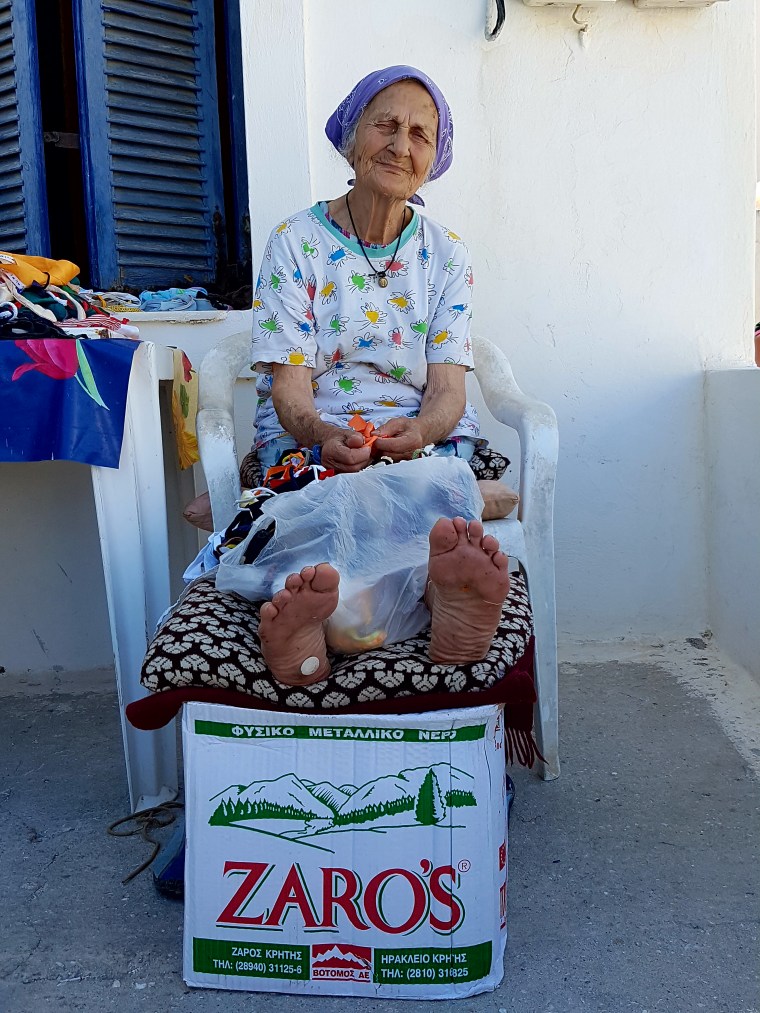 Då plötsligt får jag syn på henne😍 precis i början av byn vi bor i på en liten bakgata & utbrister till min man…..tyst, jag måste gå fram och prata med henne…..Hon blir nog ”nästan” lika lycklig av pratstunden som jag (fast bara nästan) Hon berättar att hon är minsann 86 år (nästan tandlös) & papous är 92 (nästan döv) hon är född på ön….hon har 4 barn, 2 flickor & två pojkar och massor av barnbarn, ett av barnbarnen jobbar på en av restaurangerna där vi åt lunch en dag!!👍 Barnen bor i Aten & barnbarnen kommer hit och jobbar på sommaren!!🇬🇷💙🇬🇷 Hon blir överlycklig när jag frågar om jag får ta kort där hon sitter o jobbar med sina trasor😍när jag tackar säger hon att det är till hennes glädje att jag vill fotografera henne!!!