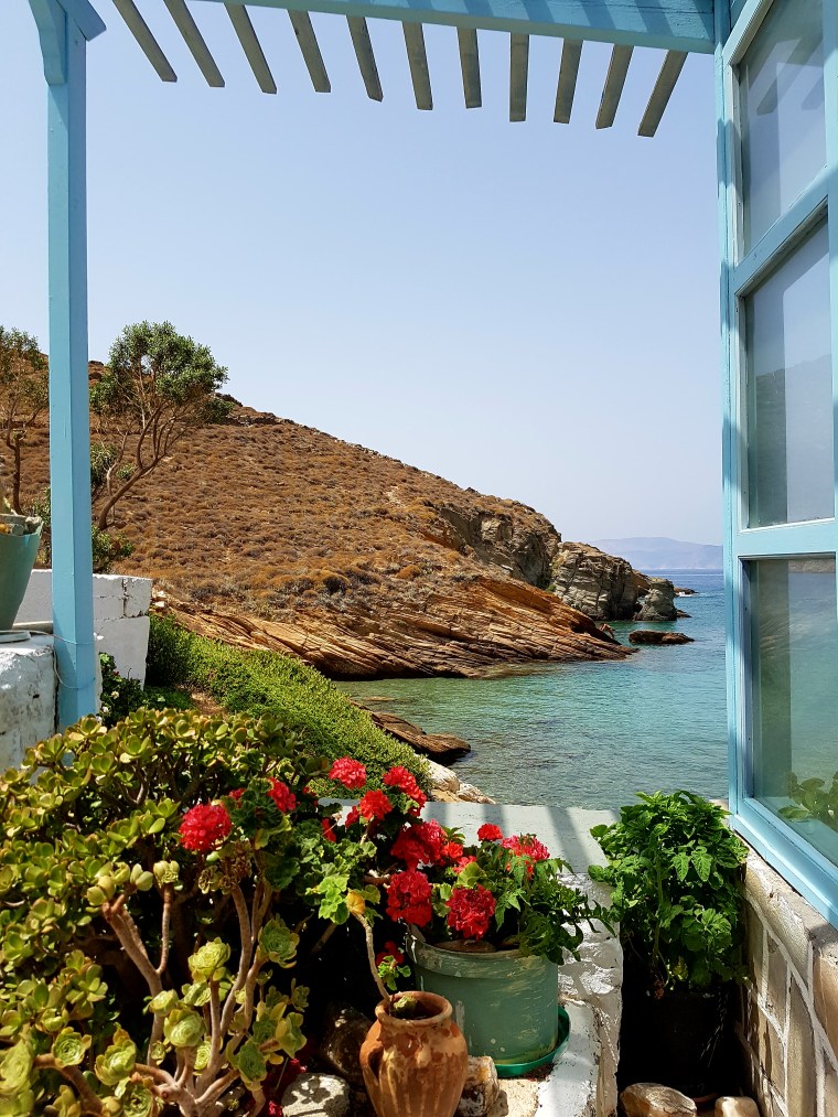 Vi hade bokat ett boende som låg precis mittemellan den stora kända Mylopatas stranden (ungdomarnas) och Choran (staden) på ön!!!🇬🇷 Bra promenad avstånd åt båda hållen egentligen, men nästa gång kommer vi ändå att bo i Choran…….varför, tänker ni säkert nu! Svar….=vet ej!😃bara en känsla vi fick!!