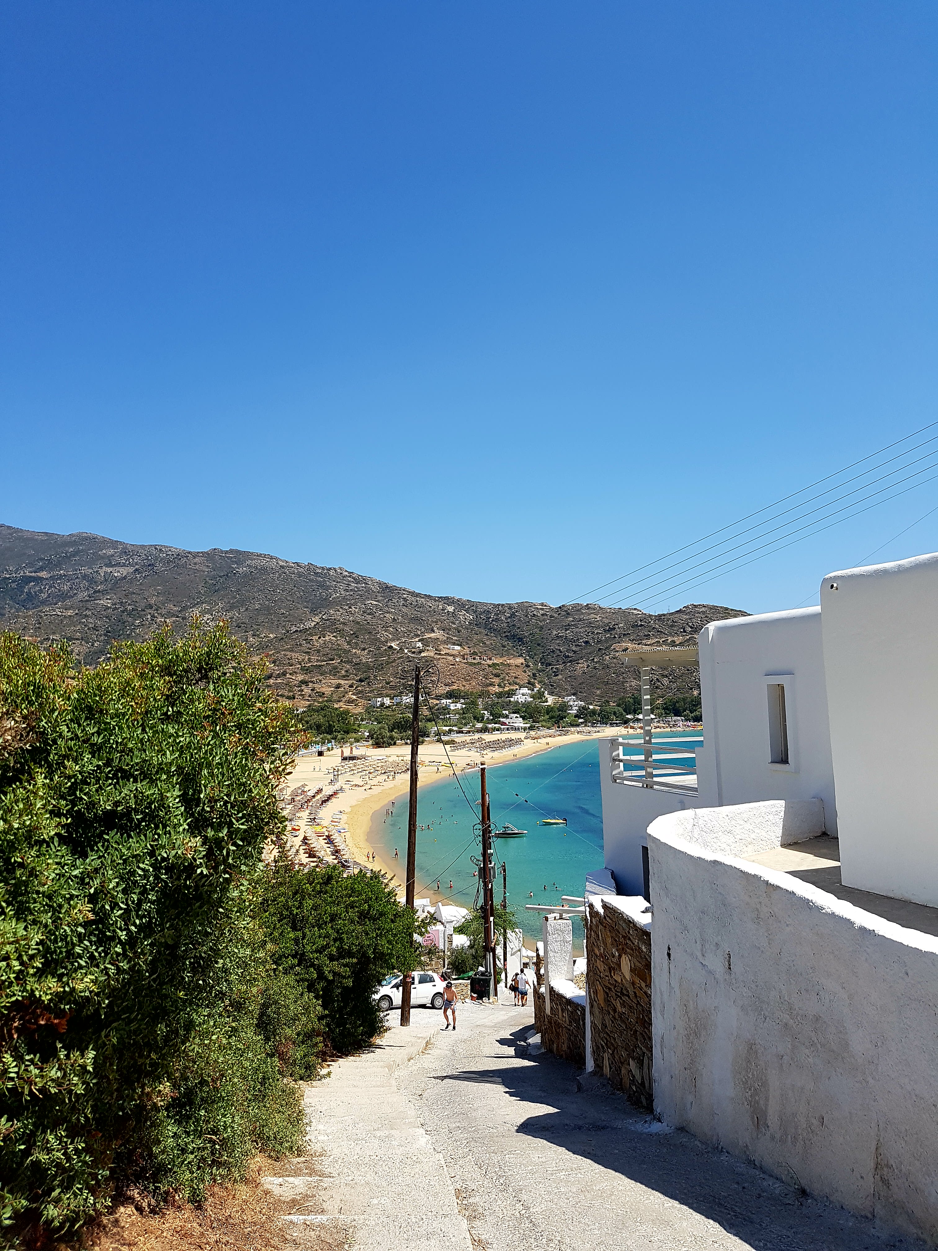 Vi hade bokat ett boende som låg precis mittemellan den stora kända Mylopatas stranden (ungdomarnas) och Choran (staden) på ön!!!🇬🇷 Bra promenad avstånd åt båda hållen egentligen, men nästa gång kommer vi ändå att bo i Choran…….varför, tänker ni säkert nu! Svar….=vet ej!😃bara en känsla vi fick!!