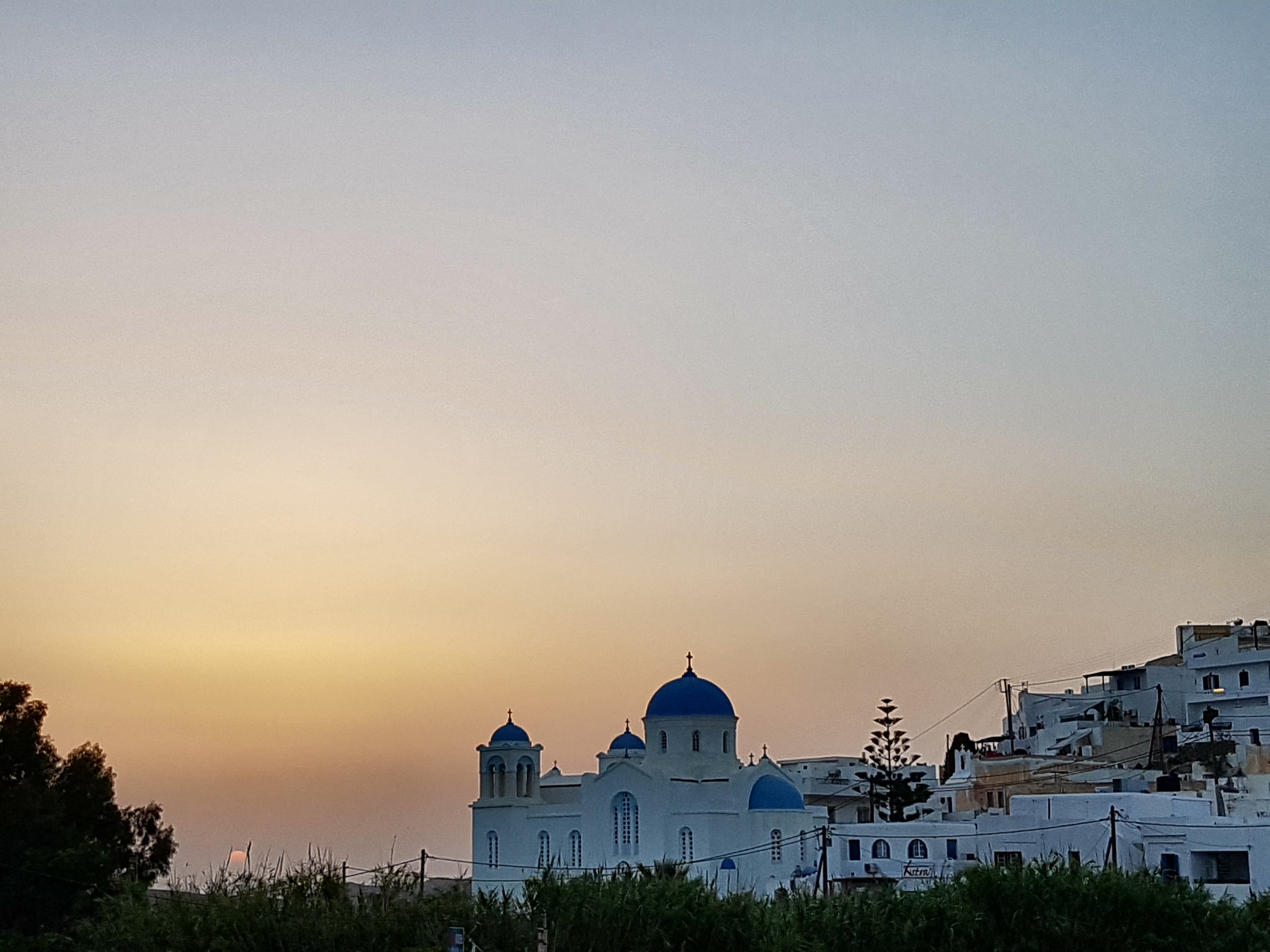 Vår 1a eftermiddag & kväll här går i lugnets & att upptäcka omgivningarnas tecken då vi inte varit här innan!!! Lite grekiskt kaffe & lite info av vår hotell ägare som hämtade upp oss i hamnen…….sen var klockan plötsligt dax för en promenad in till Choran-solnedgång – och en bit mat!!!