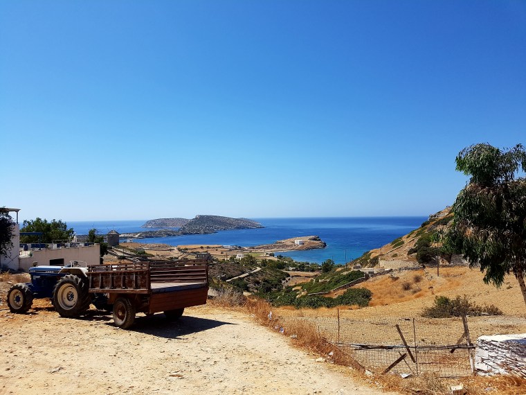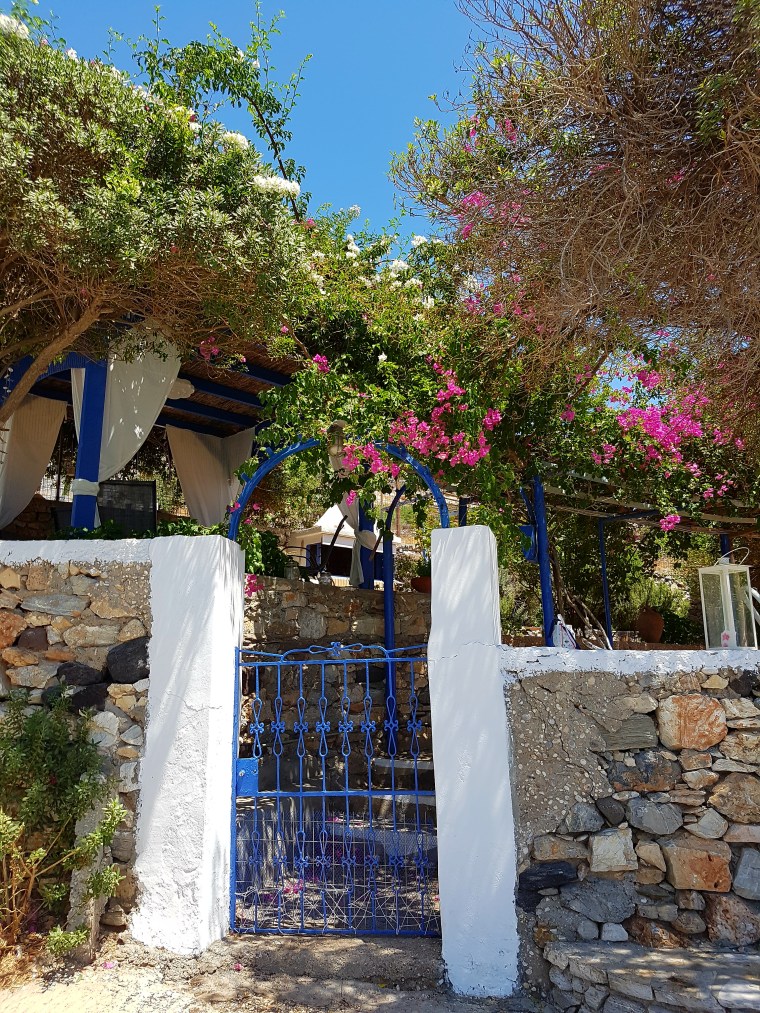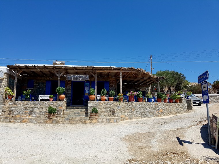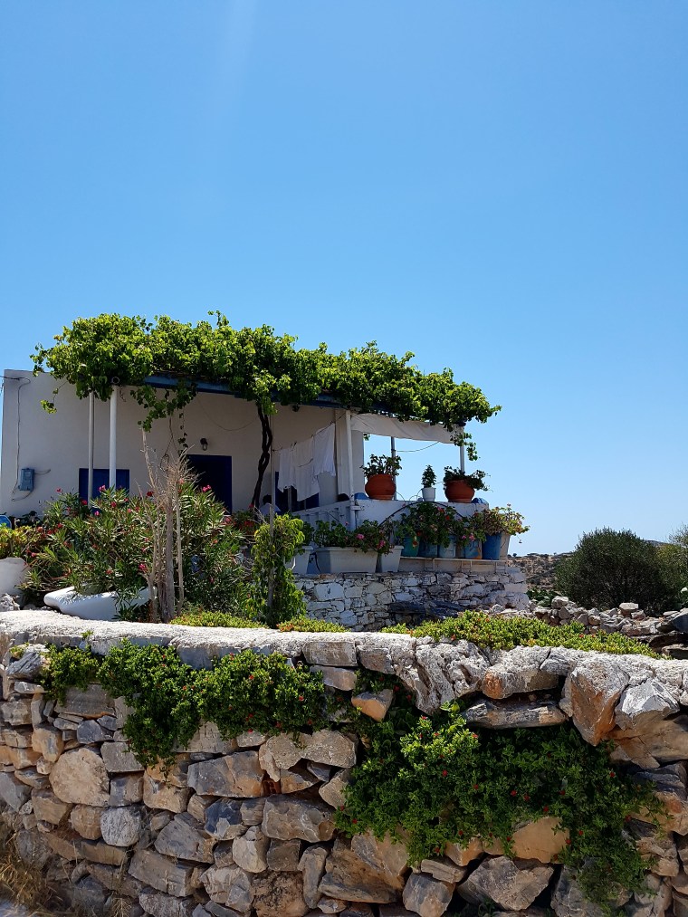 Byn är såå såååå liten att även om du går i riktigt riktigt sakta takt, så har du ändå gått igenom den på mindre än 5 min!!!! Hit åker man inte för strändernas skull, inte heller för sevärdheter (finns typ inga) utan egentligen bara för att få uppleva ett riktigt genuint grekiskt lantliv….tuppar som gol- åsnor som vrålar/bräker/tutar😃-traktorer som kör om dig i sakta mak. Och kan hända att du ser en moppe som sett sina sista dagar, helt överlastad med 20kg potatis!!!!!!!🇬🇷💙🇬🇷