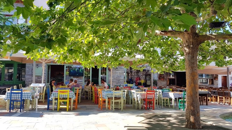 Nästan alla tavernor i den pytte lilla hamnbyn Ormos Panagias ligger på stranden……här finns ca 150 invånare och dom flesta livnär sig på fiske o lite turism!!