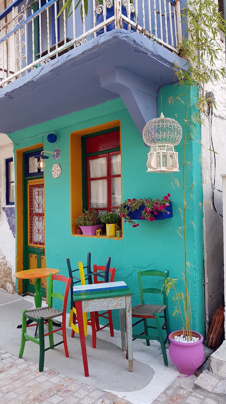 Strax innan ca 3-4 km vi är framme passerar vi lilla färgglada pittoreska byn ”Agios Nikolaous”👇👇👇 Fatta jag blev störtförälskad på direkten😂😂😂……på vår lilla promenad genom byn hör inget annat språk än grekiska!!!
