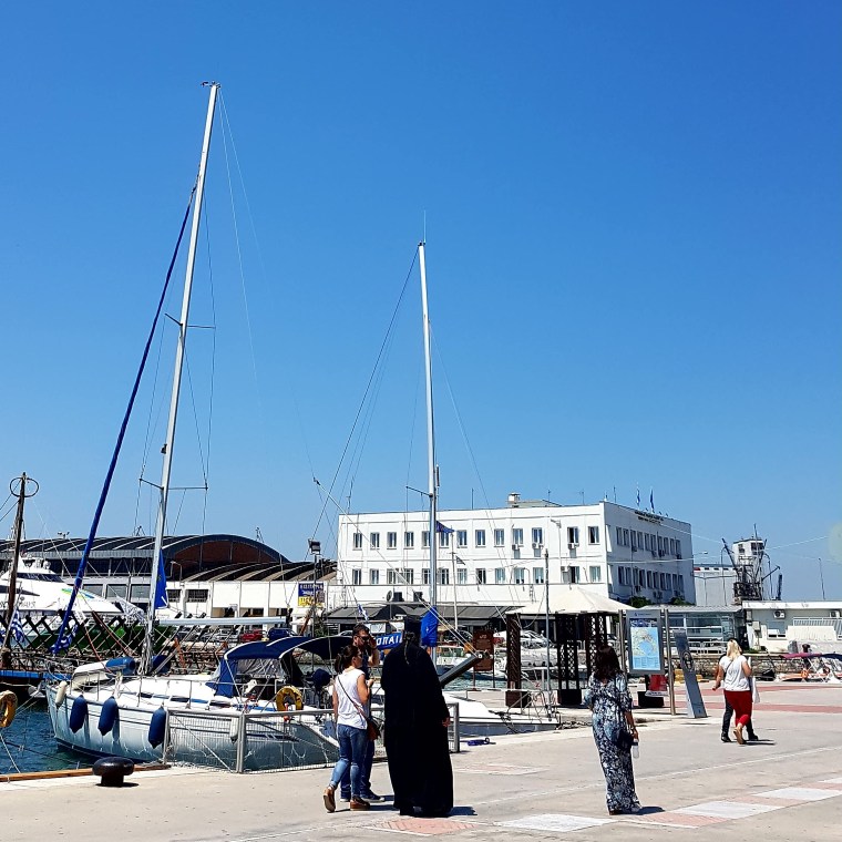 Men plötsligt på den norra delen av Month Athos halvÖn får vi gå i land i en liten by vid namn Ouranoupolis!!!!👍👍👍Ett stop på ca 2 tim…