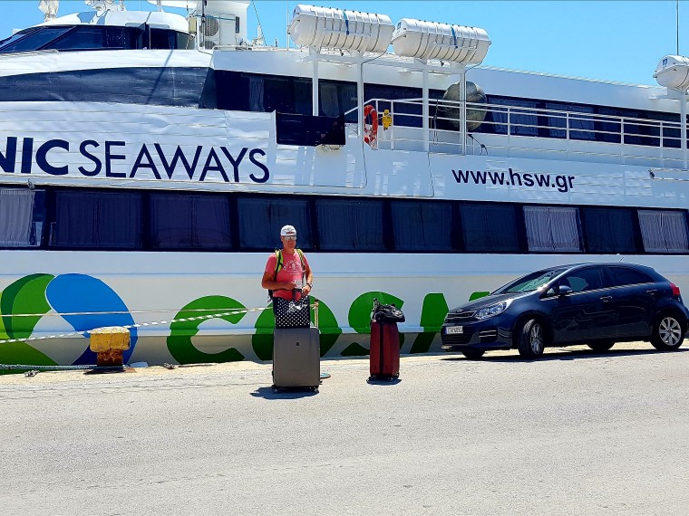 Vi återlämnar vår hyrbil i närheten av Volos hamn……slänger in alla våra väskor på närmaste biljett kontor……