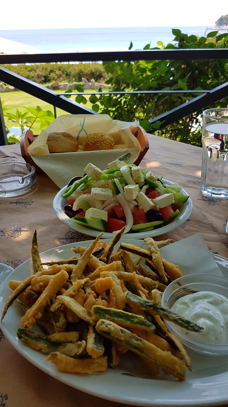 Friterade zucchini sticks med spearmint dipp & en greksallad satt väldigt fint till lunch här!!👌🔝👌