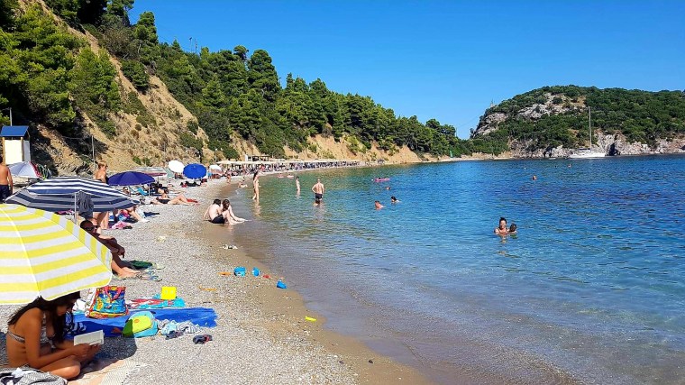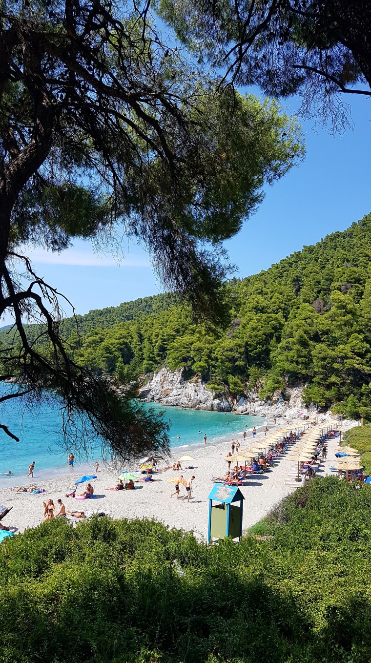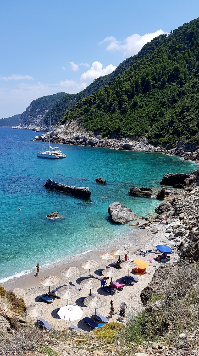 ”Velanio beach” skådas & vi klättrar ner för ett sista Skopelos dopp…..👇