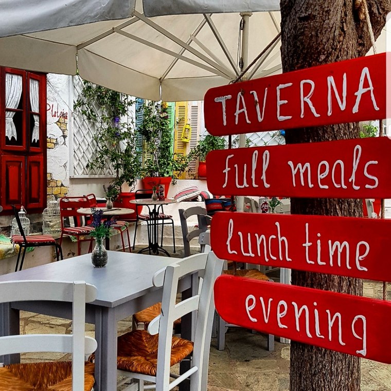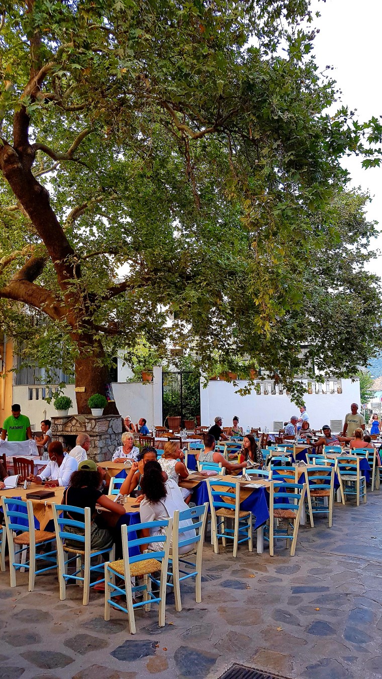 En av tavernorna på torget högst upp i byn….👇👇👇