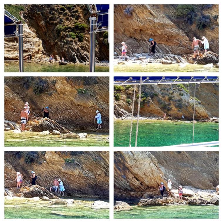 Vi är precis på väg ombord igen när vi ser 4 förvirrade damer som tillhör våran båt i vattnet utmed bergsväggen på andra sidan viken😮😮😮…..& just det, minns ni när Håkan på Thassos fick agera ”the petrol man” 3ggr?? Annars hittar ni det här👉