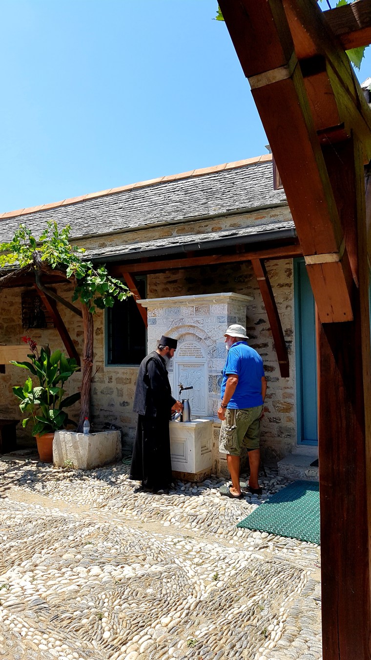Å så plötsligt när jag kliver in i munk-kloster-köket hittar jag Takis & Håkan som sitter & skålar i ”tsipouro” från kloster regionen Month Athos!!