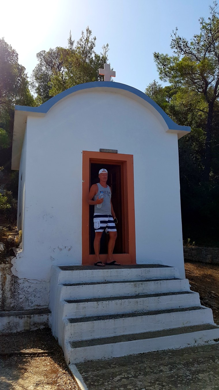 Det finns väl inga speciella sevärdheter på Alonissos, men vår sista dag här vill vi gärna göra den lätta o pyttekorta vandringen…. (om man kör moppe till där vägen tar slut, är vandringen kort i alla fall😉) bland pinjeträden till den lilla kyrkan ”Agia Anargiri”💙💙💙