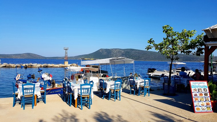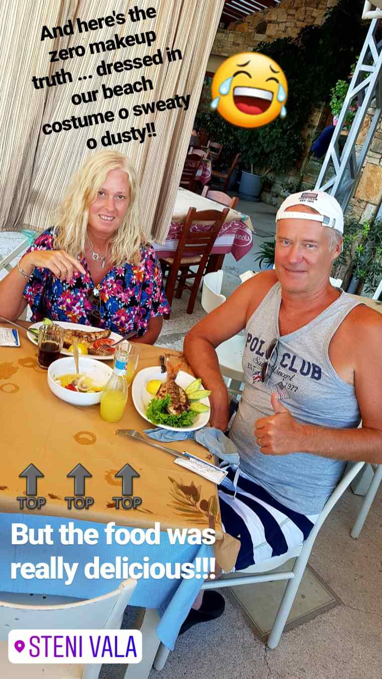 Dock äter vi en snabb lunch på den fantastiska tavernan vid Chrissi Milia innan vi ger oss av……..👌👌👌