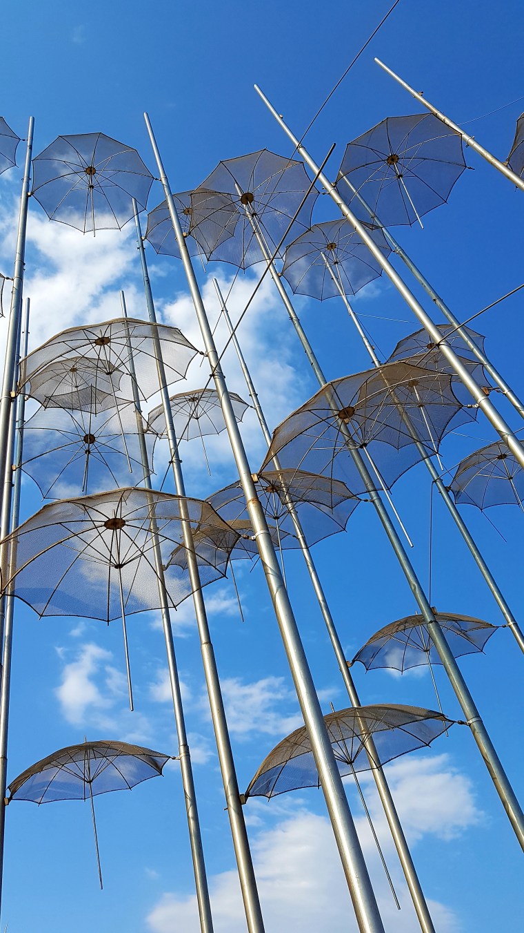 Vi fortsätter sedan mot platsen utmed strandpromenaden där dom kända stål skulpturerna av alla paraplyerna står/hänger!!!☂️☂️☂️lite coolt faktiskt & tydligen har dom stått här i drygt 20 år!!!