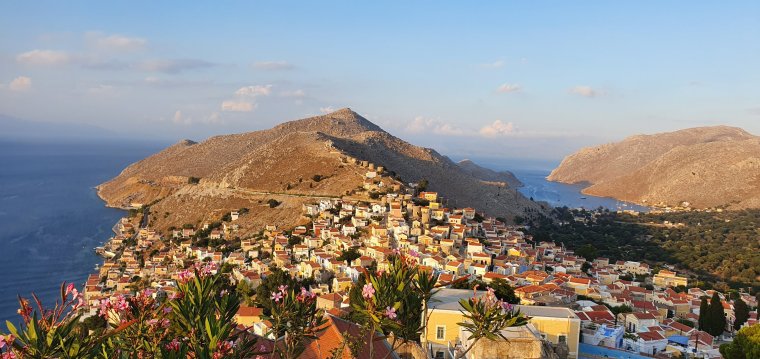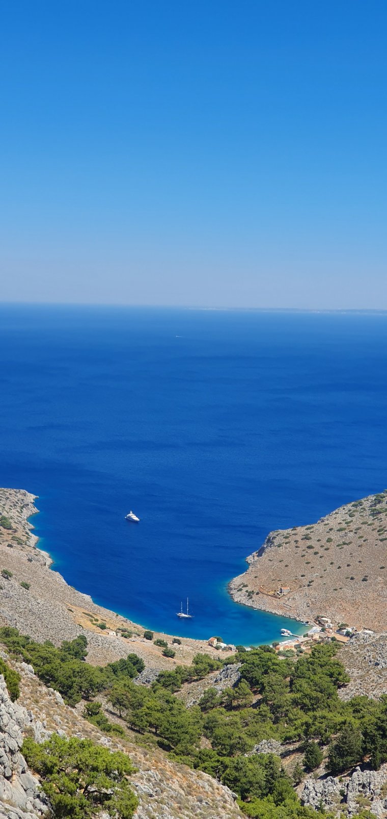 Symi bjuder på hisnande vackra vyer i stort sett ön runt, dock ett ganska kargt och dramatiskt landskap…..