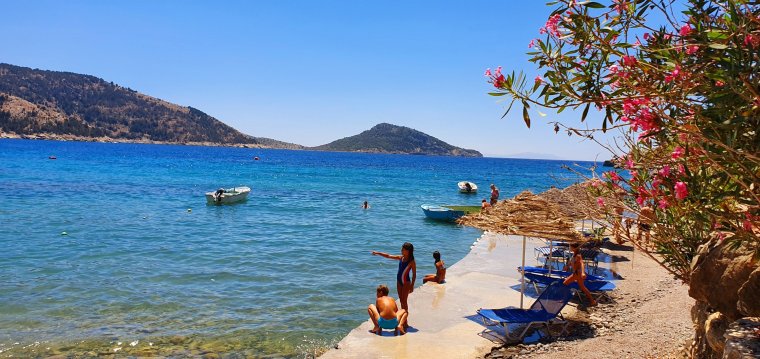 Lättast nås stränderna kring ön till fots eller just med en badbåt, typ denna!!!👇😊👇