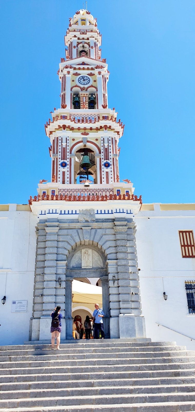 Vespan och min make Håkan har bestämt att vi nu styr mot klostret ”Taxiarchis Michalis Panormitis” som ligger på södra Symi…..och jag e fortfarande i matkoma då jag lite plötsligt får för mig att göra denna lilla händelse till mitt 👉 Instagram som fick sån uppmärksamhet😂🙈😂🙈😂Jag blir lite trött på o se denna nacke ibland…..men jag får inte köra säger maken då det är motorcykel vespa han hyr o inte moppe vespa!!!🙄