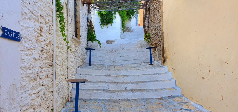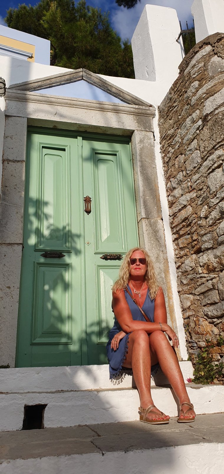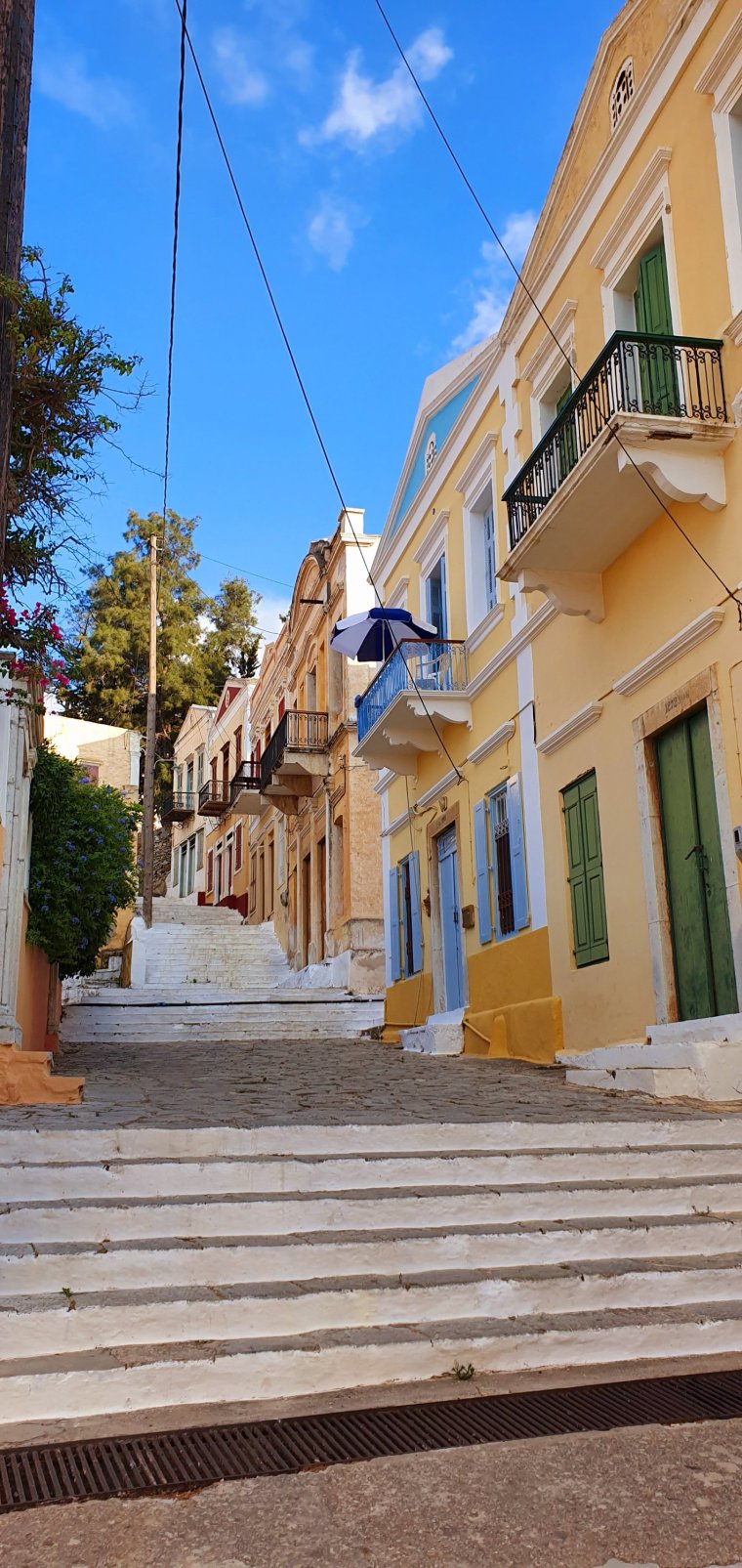 Det är tidig kväll när vi är tillbaka i Yialos & jag hittar denna trappan👇😊👇tänk o gå o hämta morgontidningen här var dag💪bra ben o flås träning ju!!