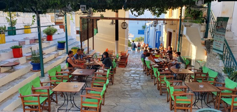 Här uppe i Chorio råder ett lugn vi inte hittat någonstans nere i Yialos!!!🙏🙏🙏Urmysiga små o trånga gränder…..där vi tyst tassar förbi någons hem….där vi ser tunna gardiner fladdra ut ur fönstren….där vi hör hög volym skråla ut ur en grekisk tjock- tv…..där vi ser en man ensam i en gränd flå & rensa dagens fiskfångst!!!💙💙💙