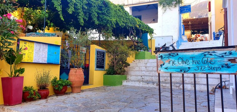 372 trappsteg hit till The olive tree café/ taverna säger skylten ….👇