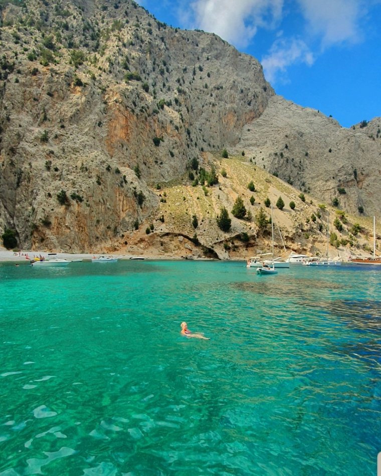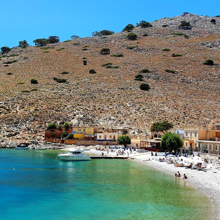 Symi kan inte stoltsera med några pudervita sandstränder precis, men det finns ett par coola alternativ & ett av dom är ”get” stranden ”Marathounda” jag läst om och dit vill jag idag!!!