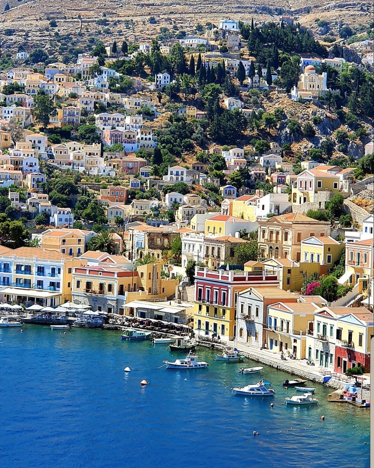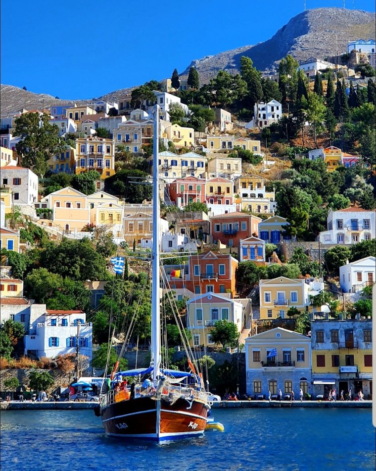 På Symi bor det drygt 2500 personer året runt!! Här finns typ 2 pyttebyar ”Chorio” & ”Pedi” & en lite större by ”Yialos” där vi bor!!!🇬🇷💙🇬🇷 Dagtid invaderas ön med mängder av dagsturister som kommer från Rhodos…..speciellt Yialos = hamnbyn som vi bor i!!Snabbåt från Rhodos till Symi tar ca 1 tim!!! Dagtid rymde vi fältet med badbåt eller vespa!!!😊Kvällstid var vår lilla hamnby lugn o mycket charmig igen!!