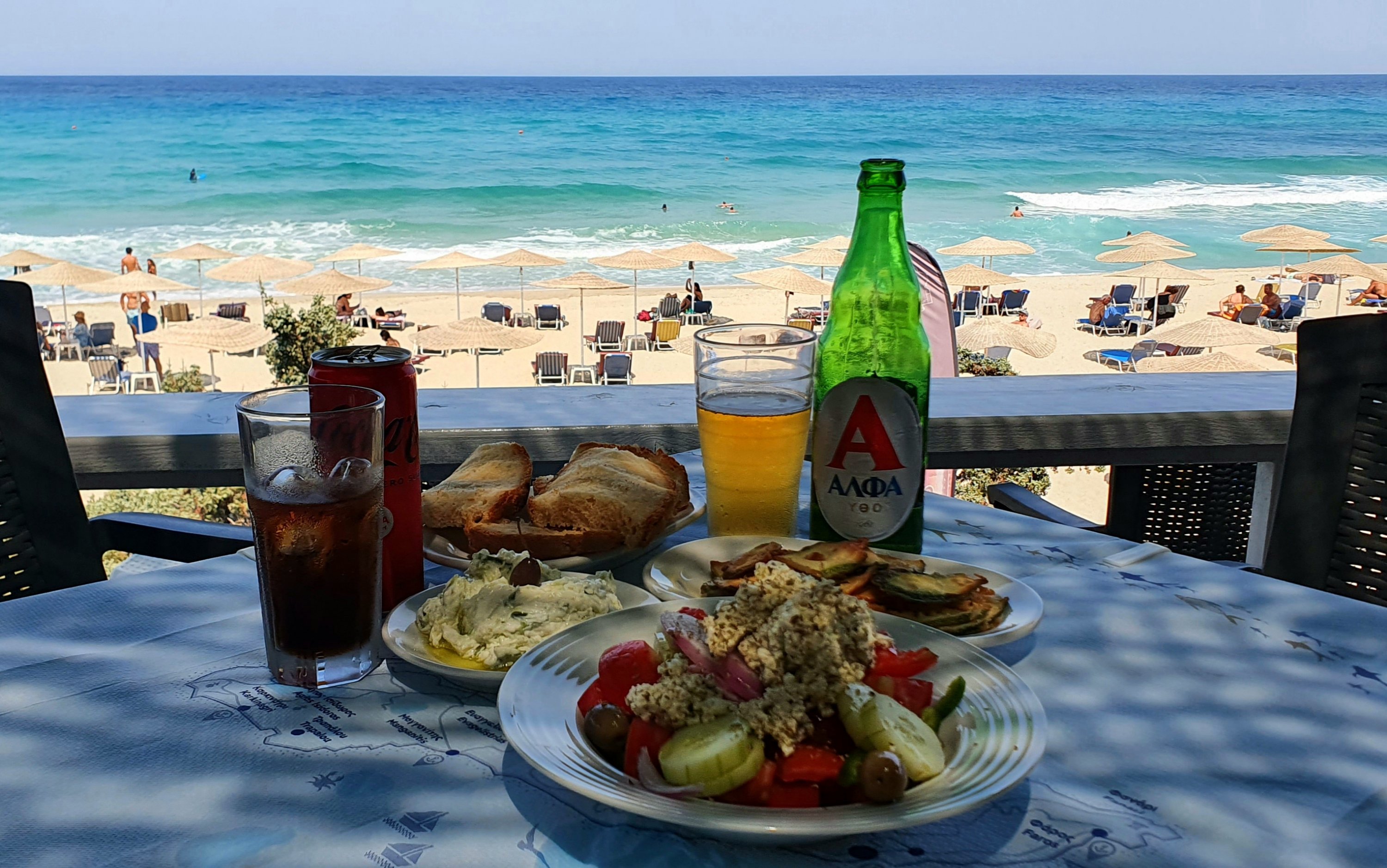 Mat i byn m havet pĂ„ 1a parkett👇……& ja, HĂ„kan fick testat ön’s egenbryggda lokala öl ”Ikariotissa” flera ggr!!!đŸșđŸ»
