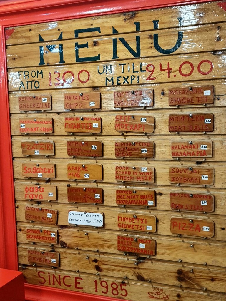 En av kvĂ€llarna Ă€ter vi pĂ„ tavernan ”Atchasas” som ligger pĂ„ krypavstĂ„nd frĂ„n vĂ„rt boende…..KvĂ€llens meny ser ni nedan👇bĂ„de annorlunda- rolig- och vĂ€ldigt covid sĂ€ker meny!!!😁Utsikten hĂ€rifrĂ„n nĂ€r mörkret lĂ€gger sig över Armenistis Ă€r sÄÄ fin!!💙