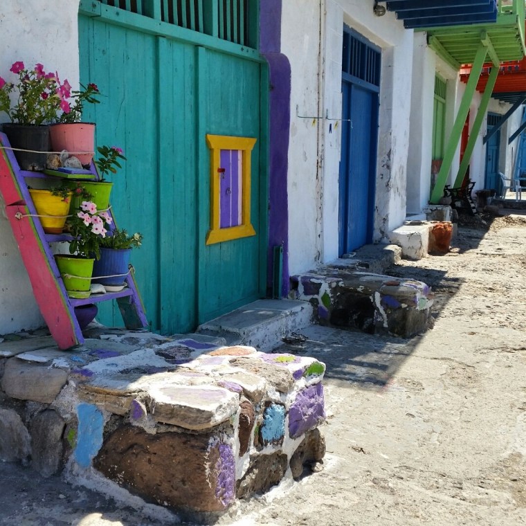 Nu fortsätter vi på Milos igen…här en annan mycket färgglad hamn med mycket originella båthus är ”Klima”!!!