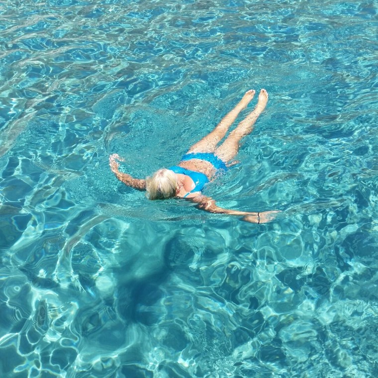 Här badar jag i vattnet precis utanför Kleftiko…..& mer turkost vatten får man nog leta efter, eller vad tror ni??? Vi har bara sett likadant vatten på en Ö tur vid Paxos och AntiPaxos som vi gjorde för många år sedan när vi besökte Parga på fastlandet!!!💙