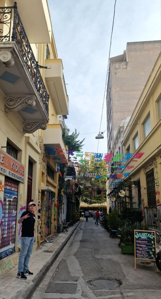 Dag 3 tĂ€nker vi strosa runt i Psirri omrĂ„det……