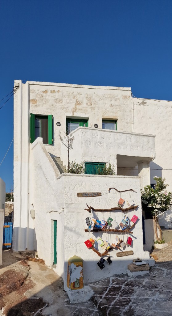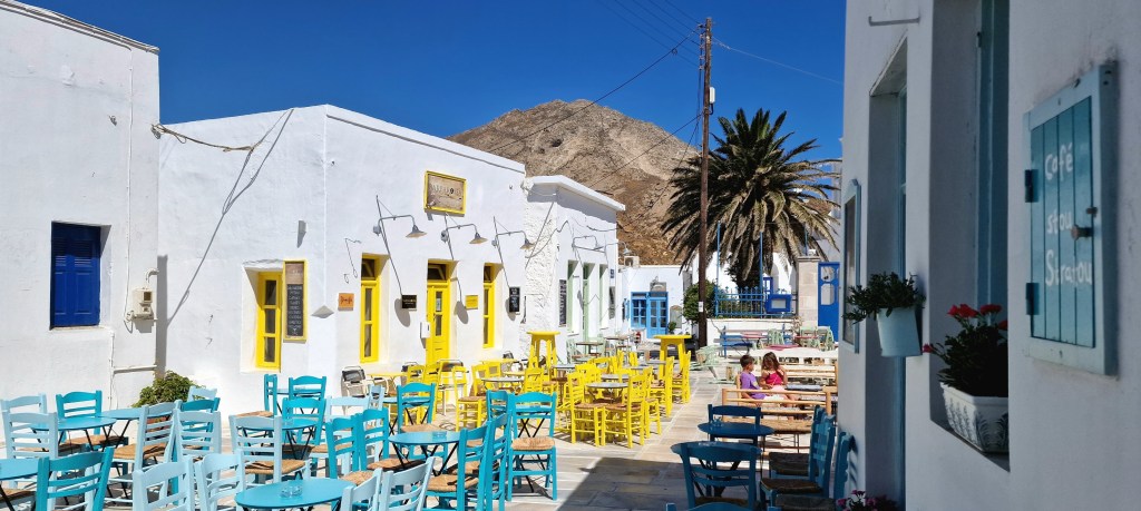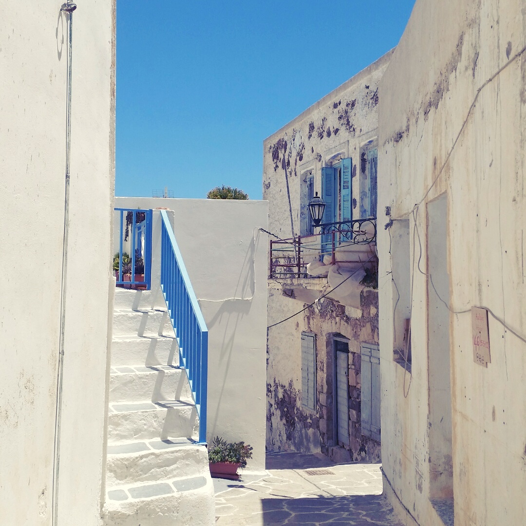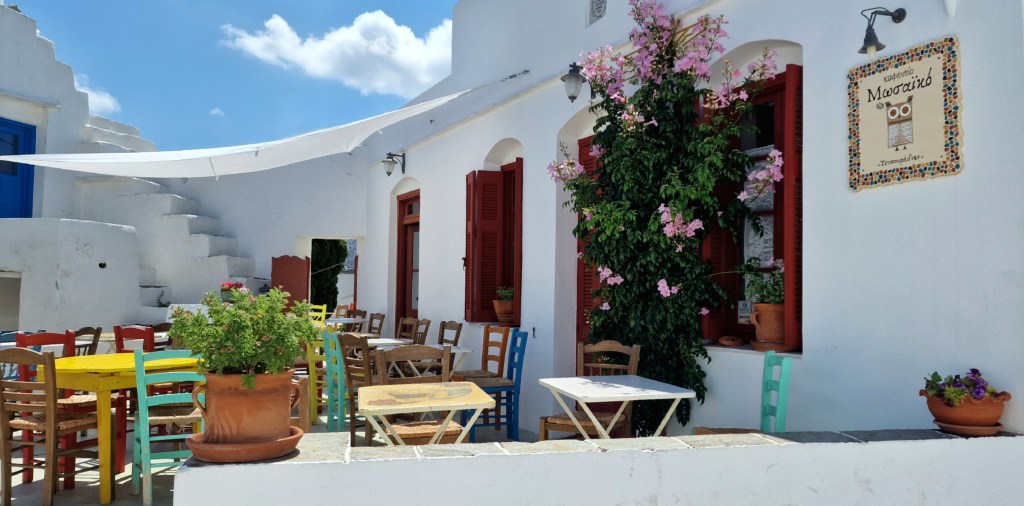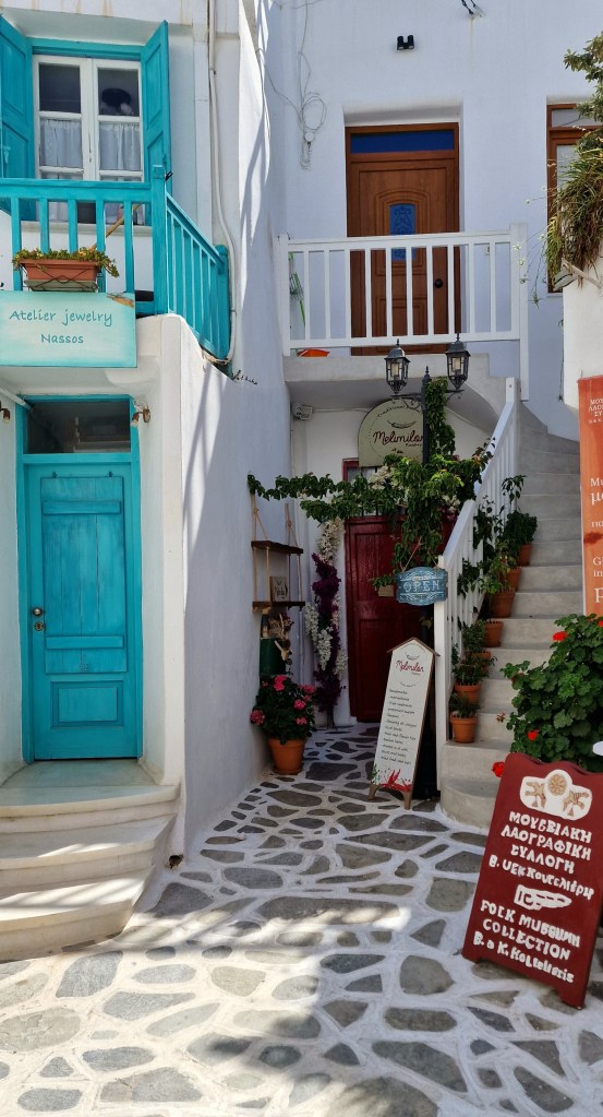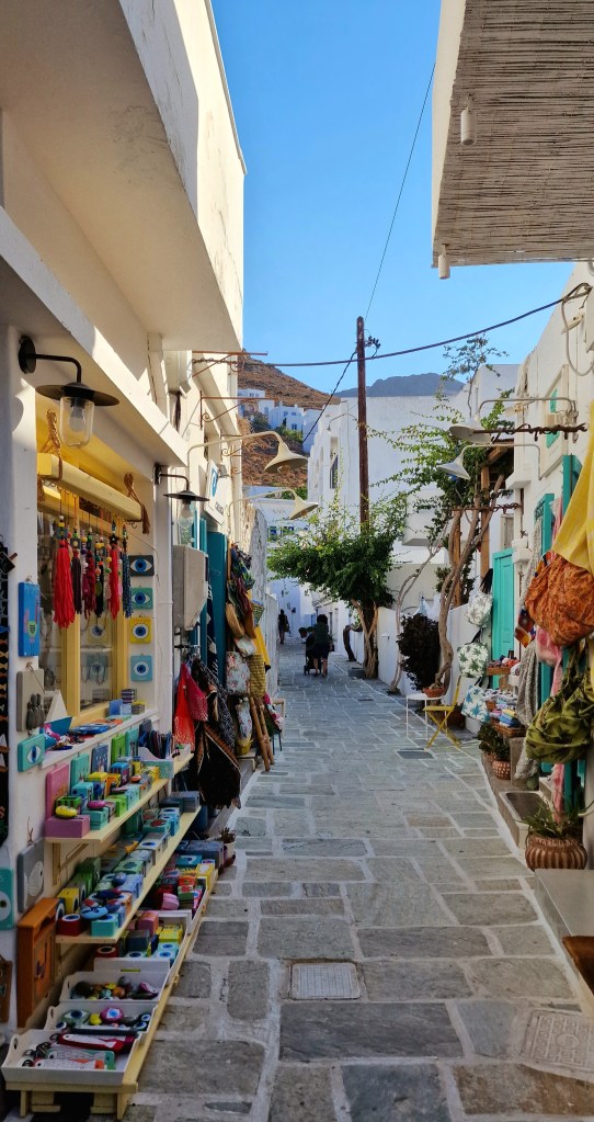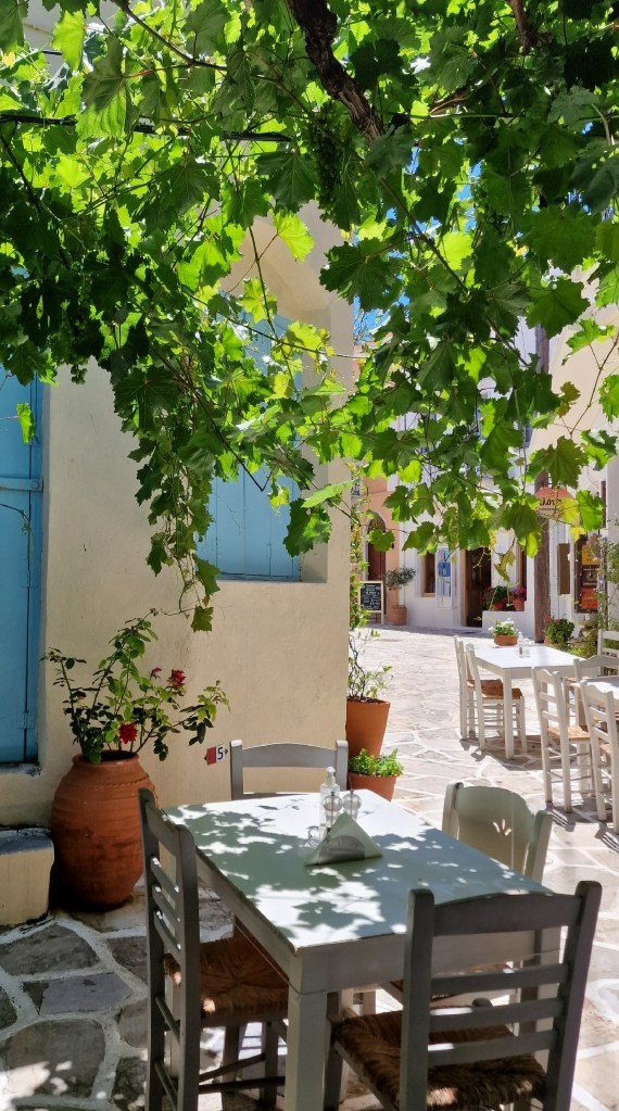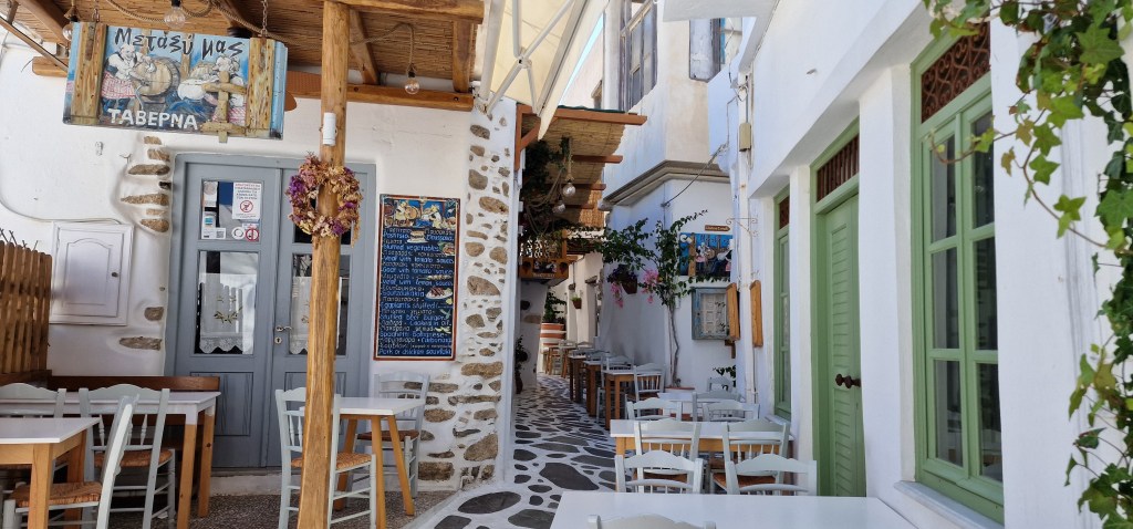 Lefkes är oxå en otroligt vacker by med drygt 500 fasta invånare…..här kryllar också av vitkalkade små smala gränder plus en hel del trappor – betydligt mer turister som hittat hit & det finns både butiker/caféer i större utsträckning…..
